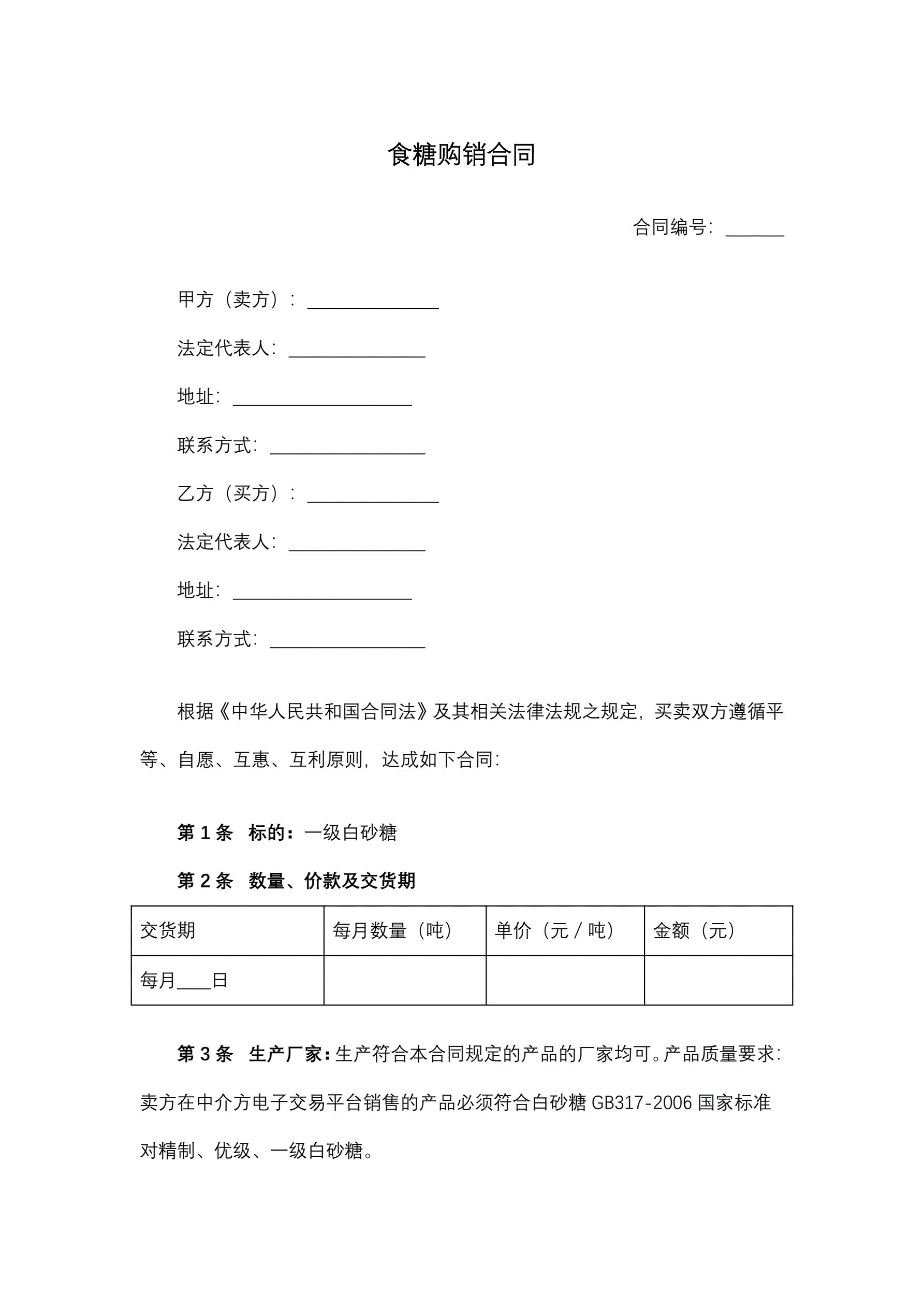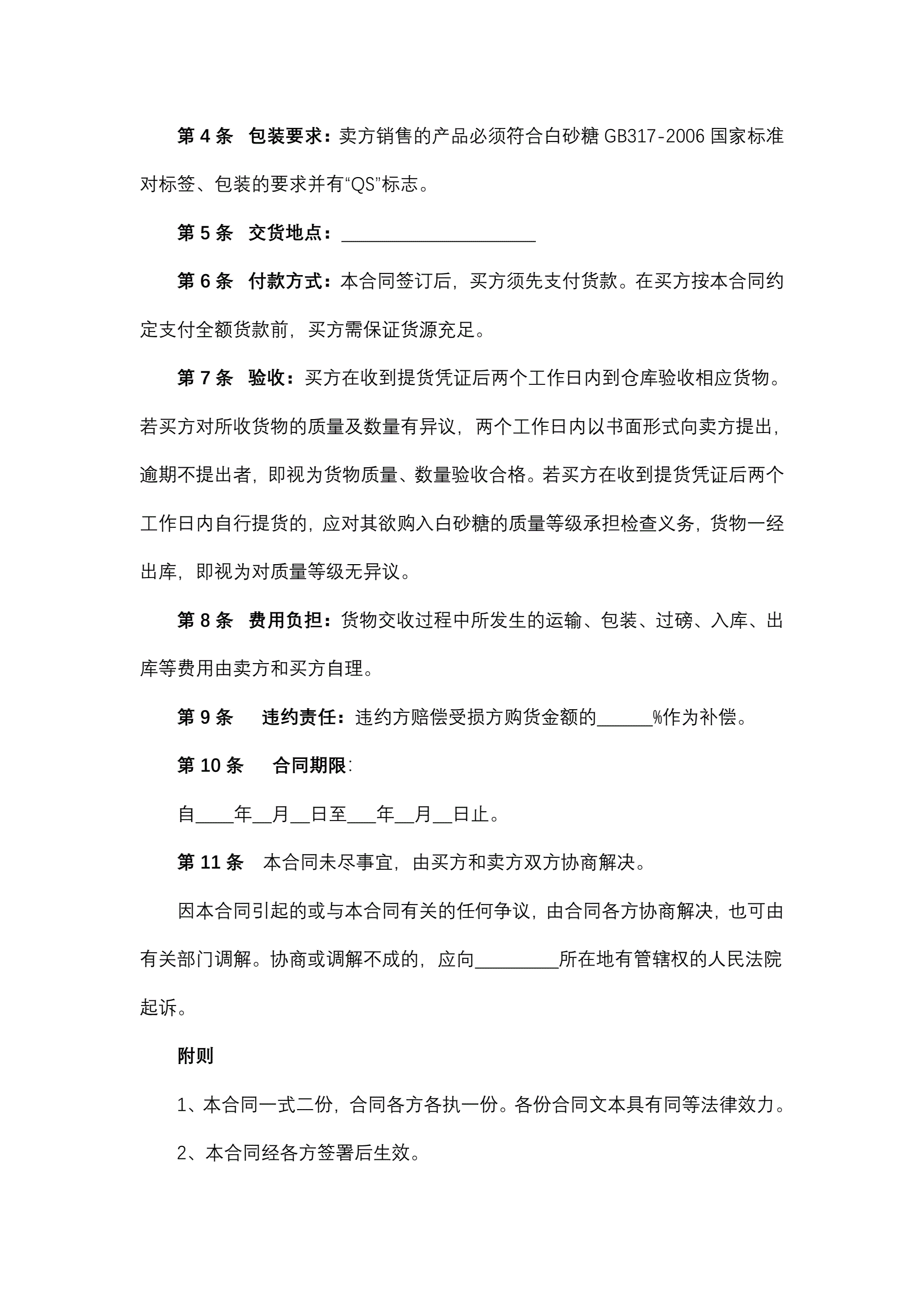 食糖购销合同