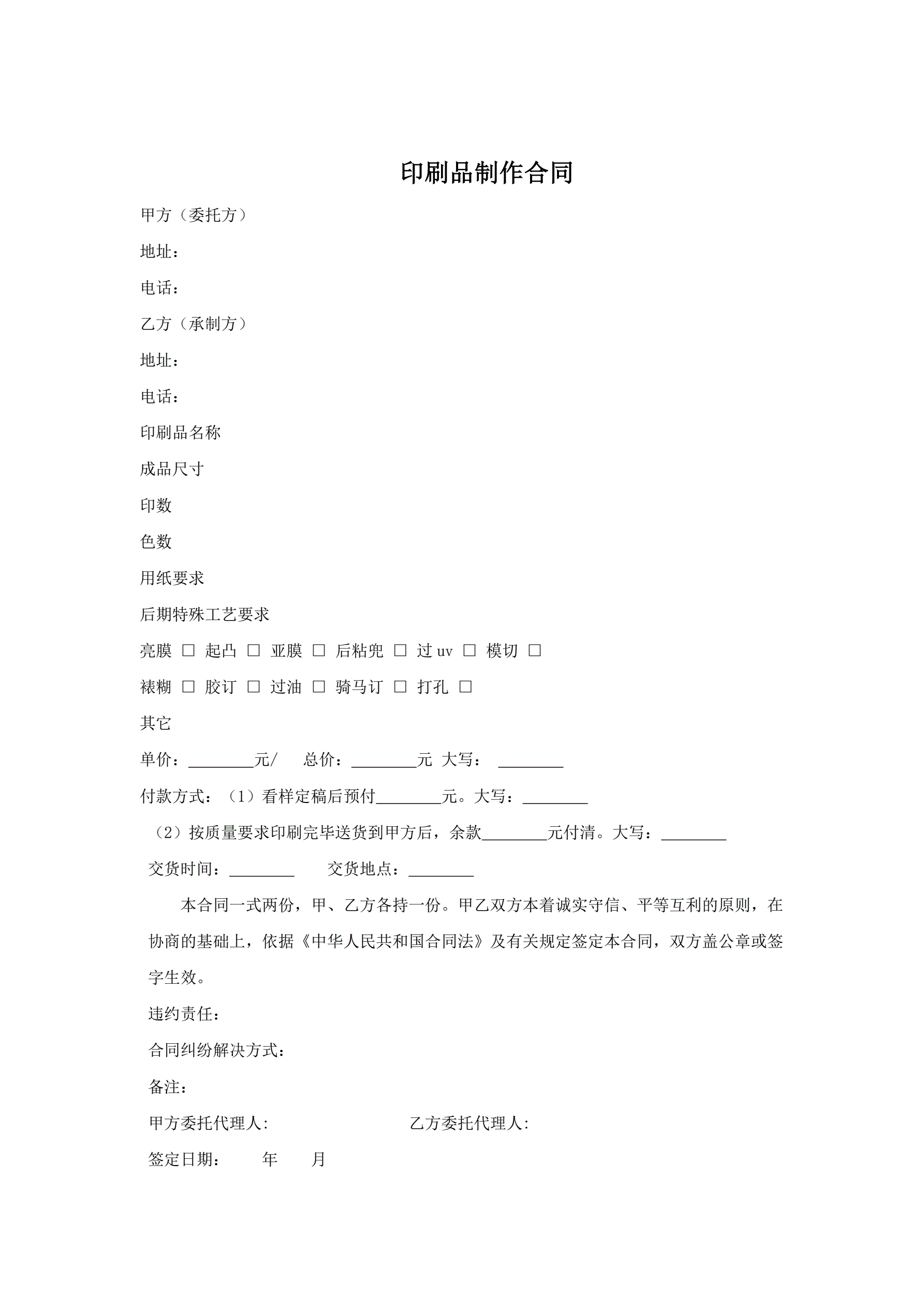 印刷品制作合同