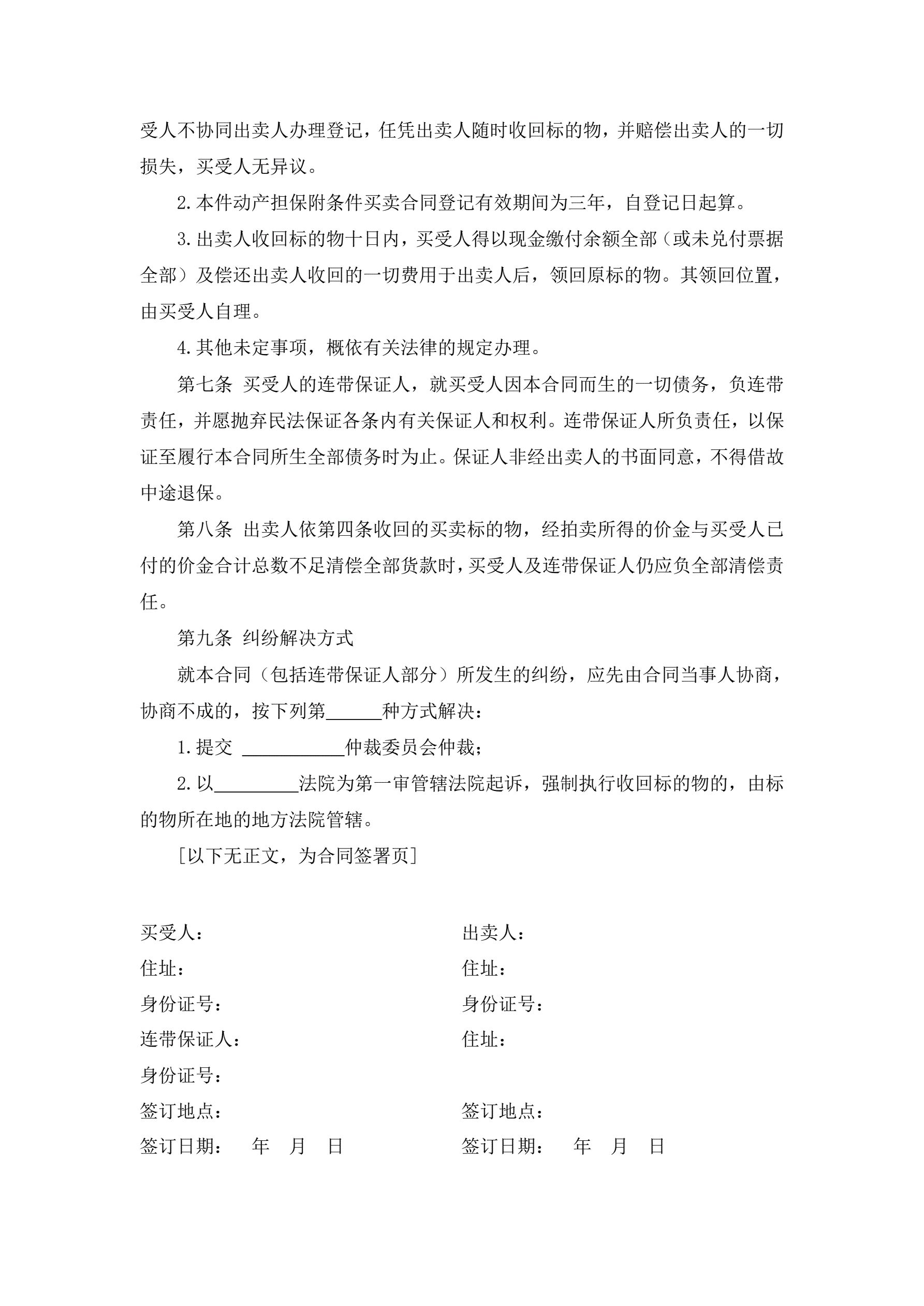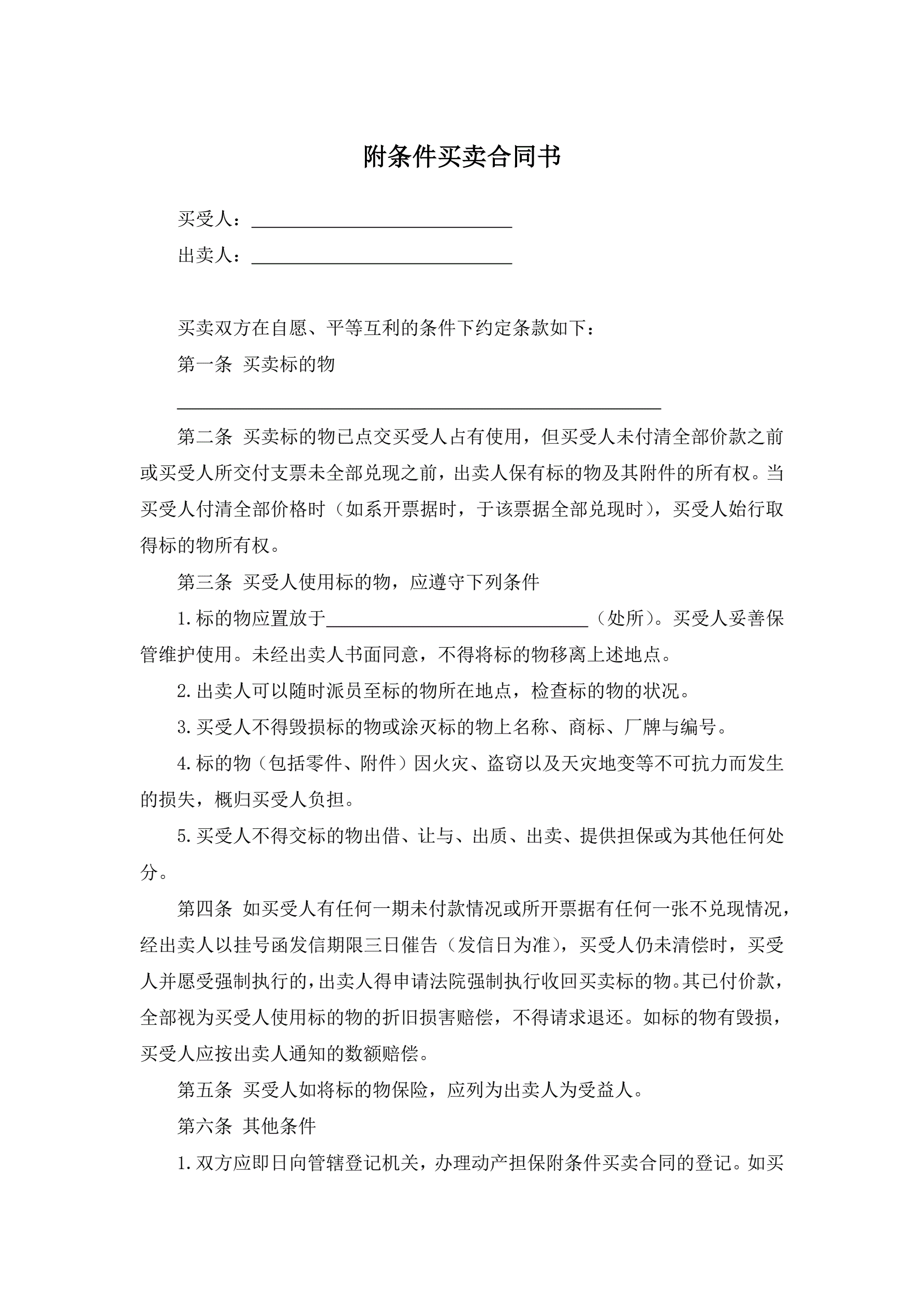 附条件买卖合同书
