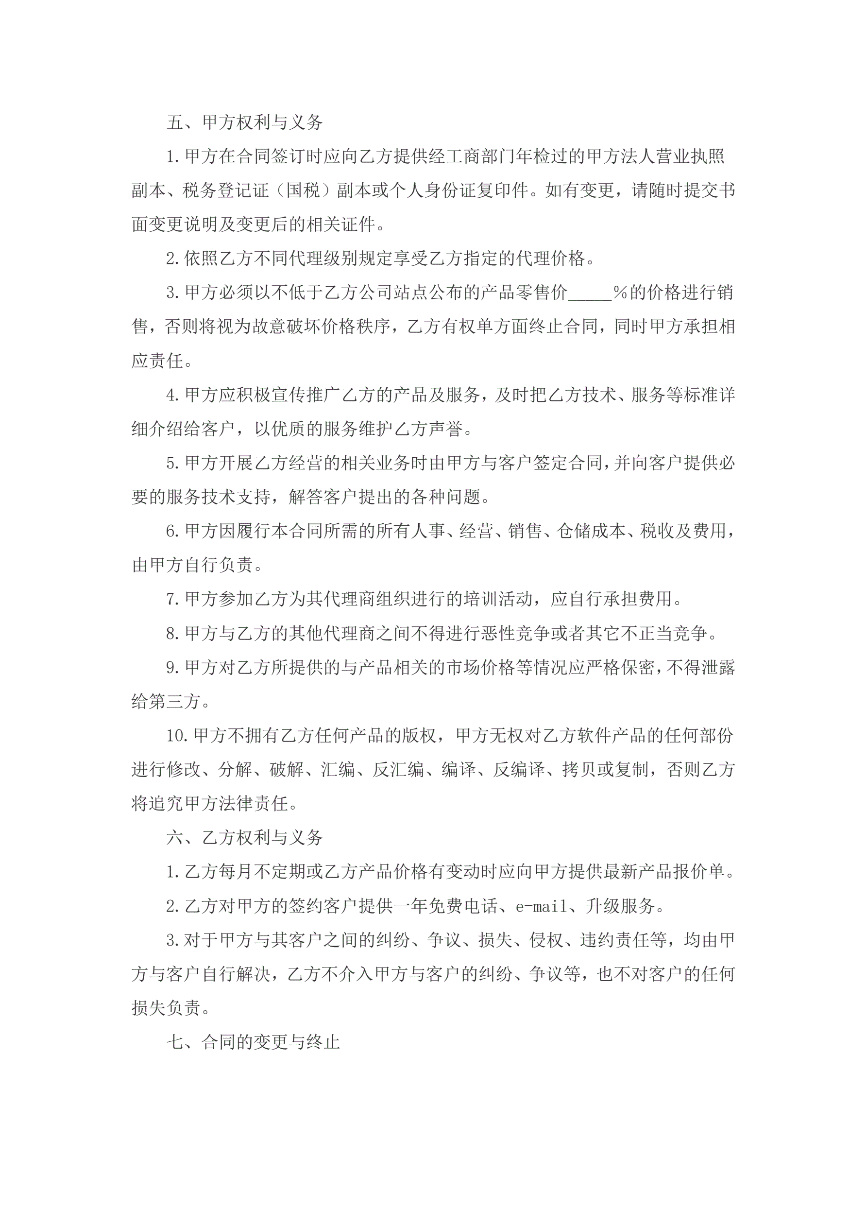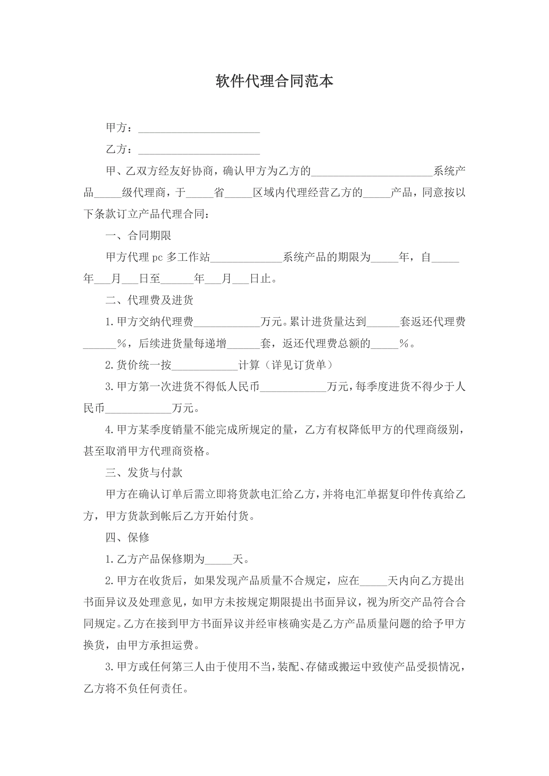 软件代理合同范本