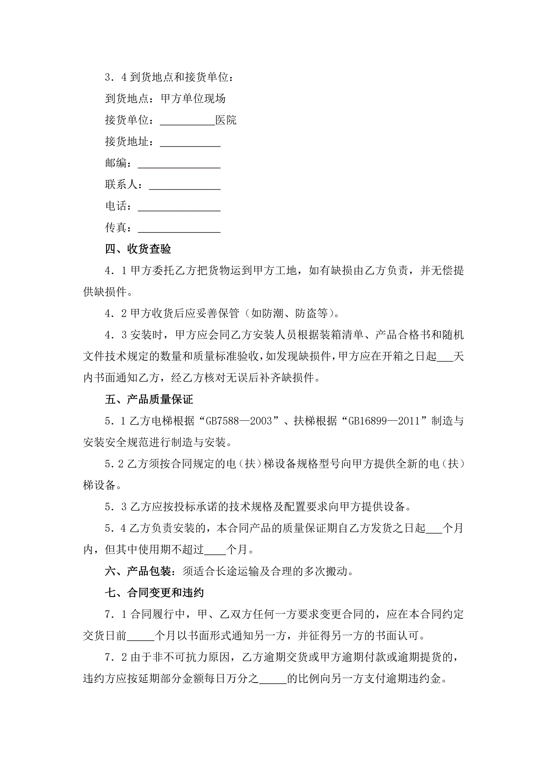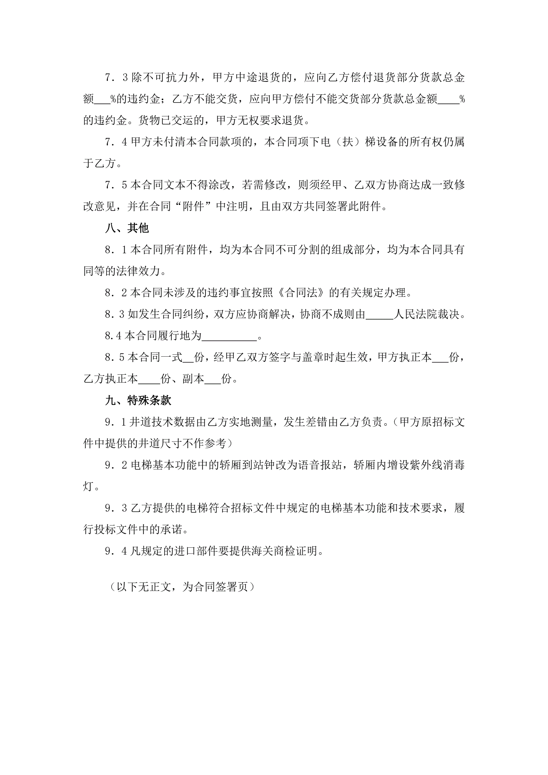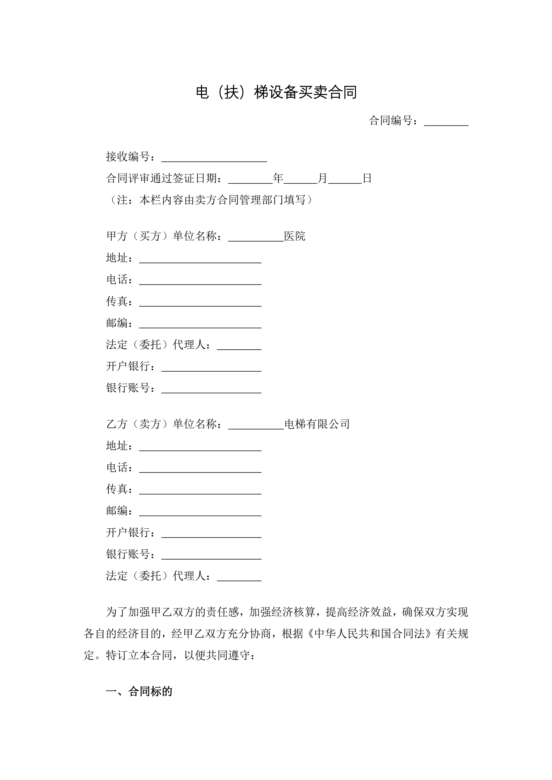 合同名称:电(扶)梯设备买卖合同