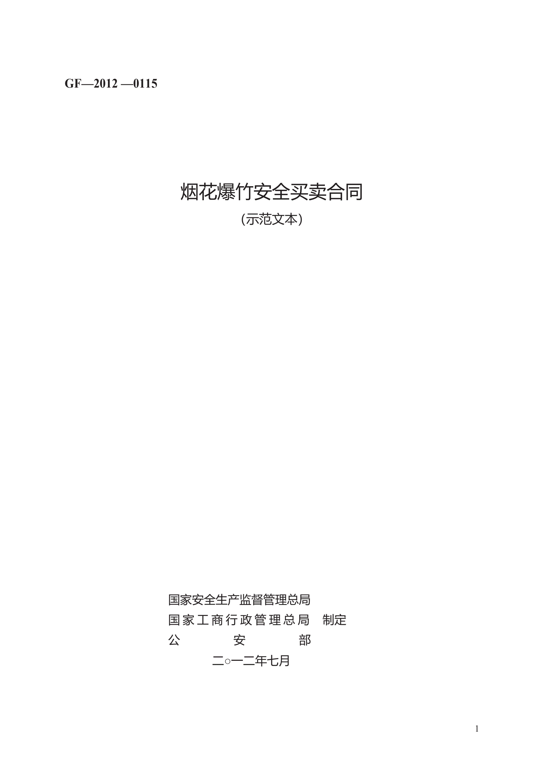 >烟花爆竹安全买卖合同 GF—2012—0115