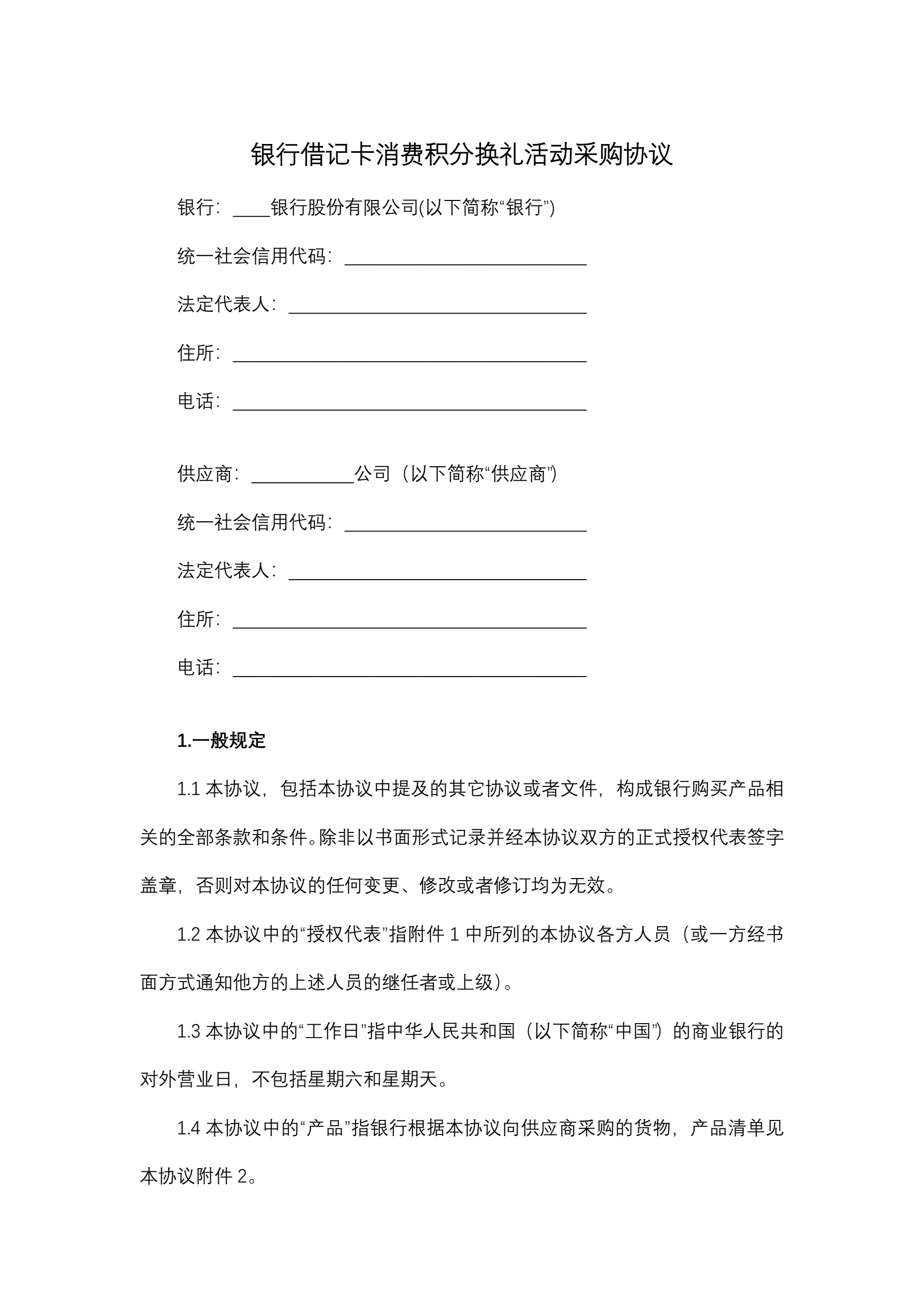 >银行借记卡消费积分换礼活动采购协议