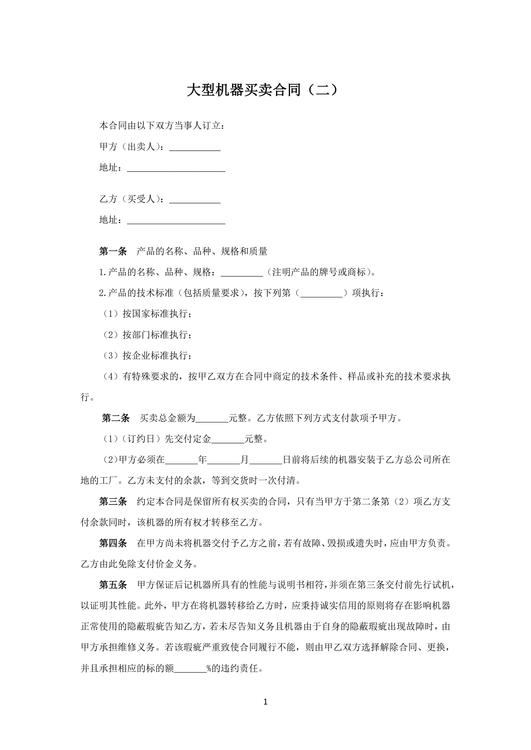 大型机器买卖合同
