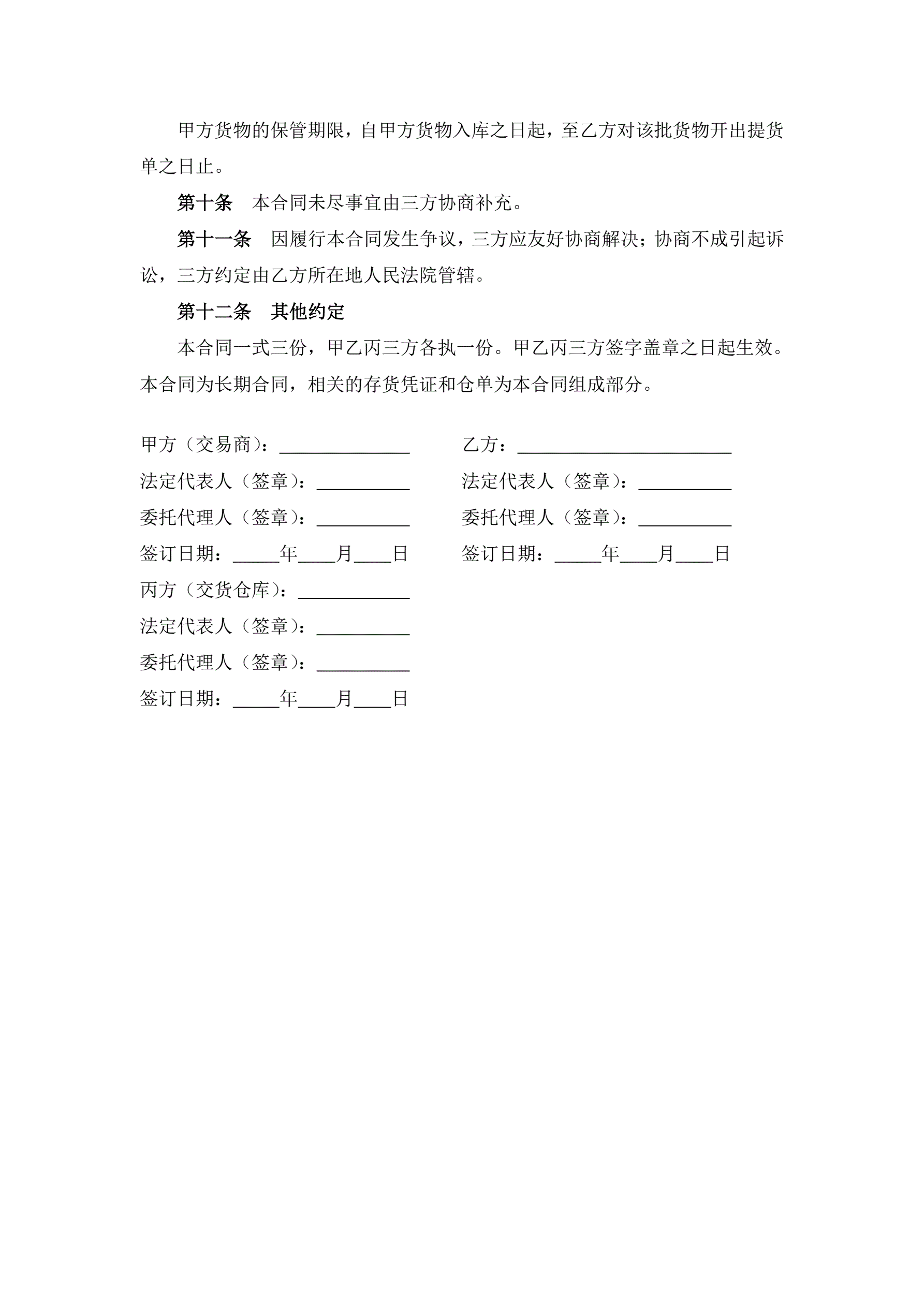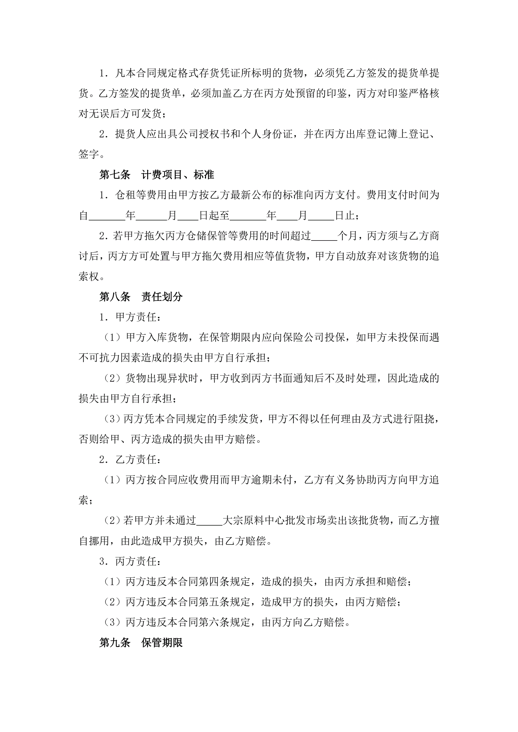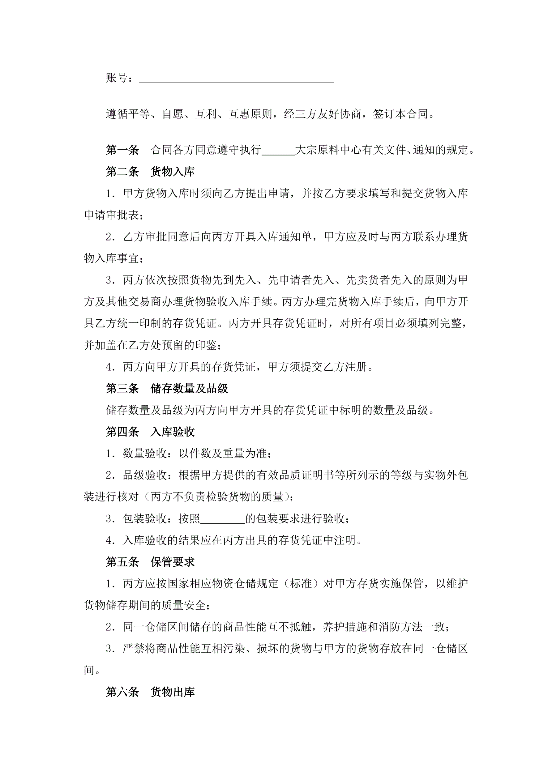 >大宗货物仓储合同