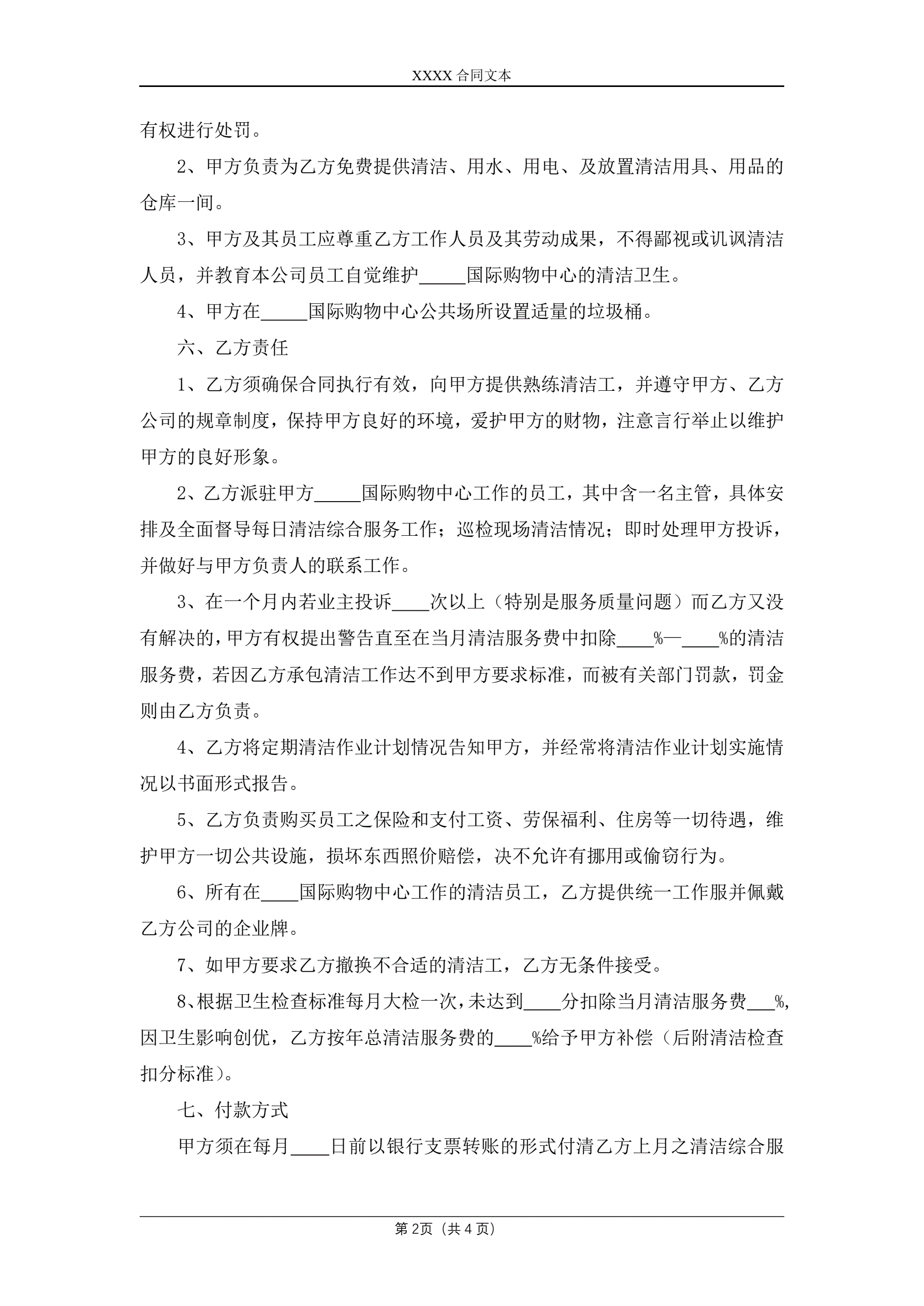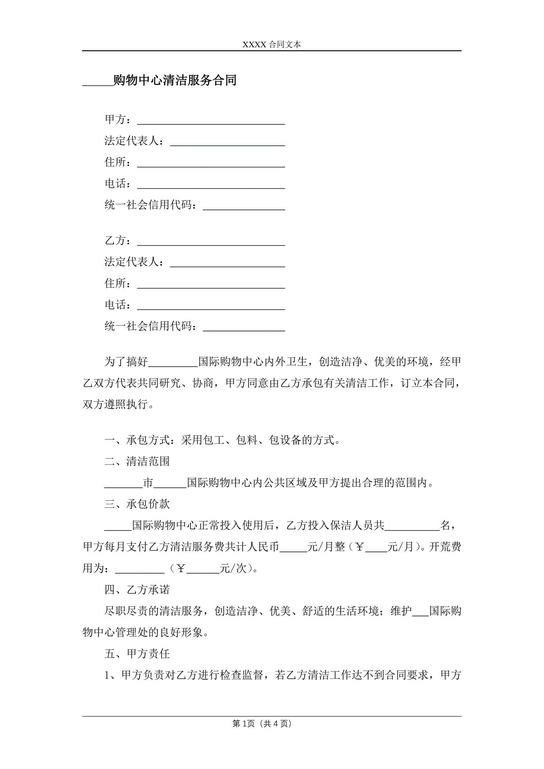 合同名称:购物中心清洁服务合同