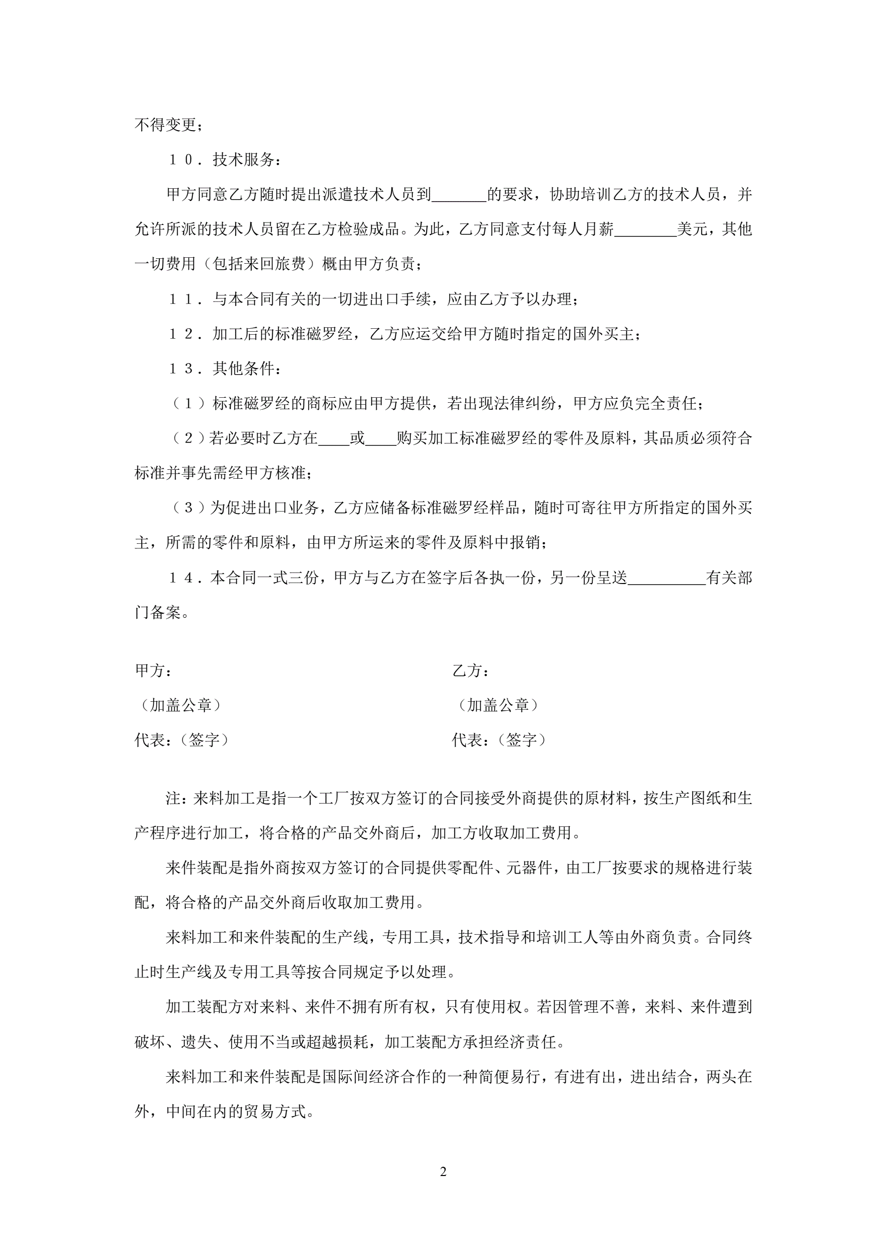 >磁罗经来料加工和来件装配合同