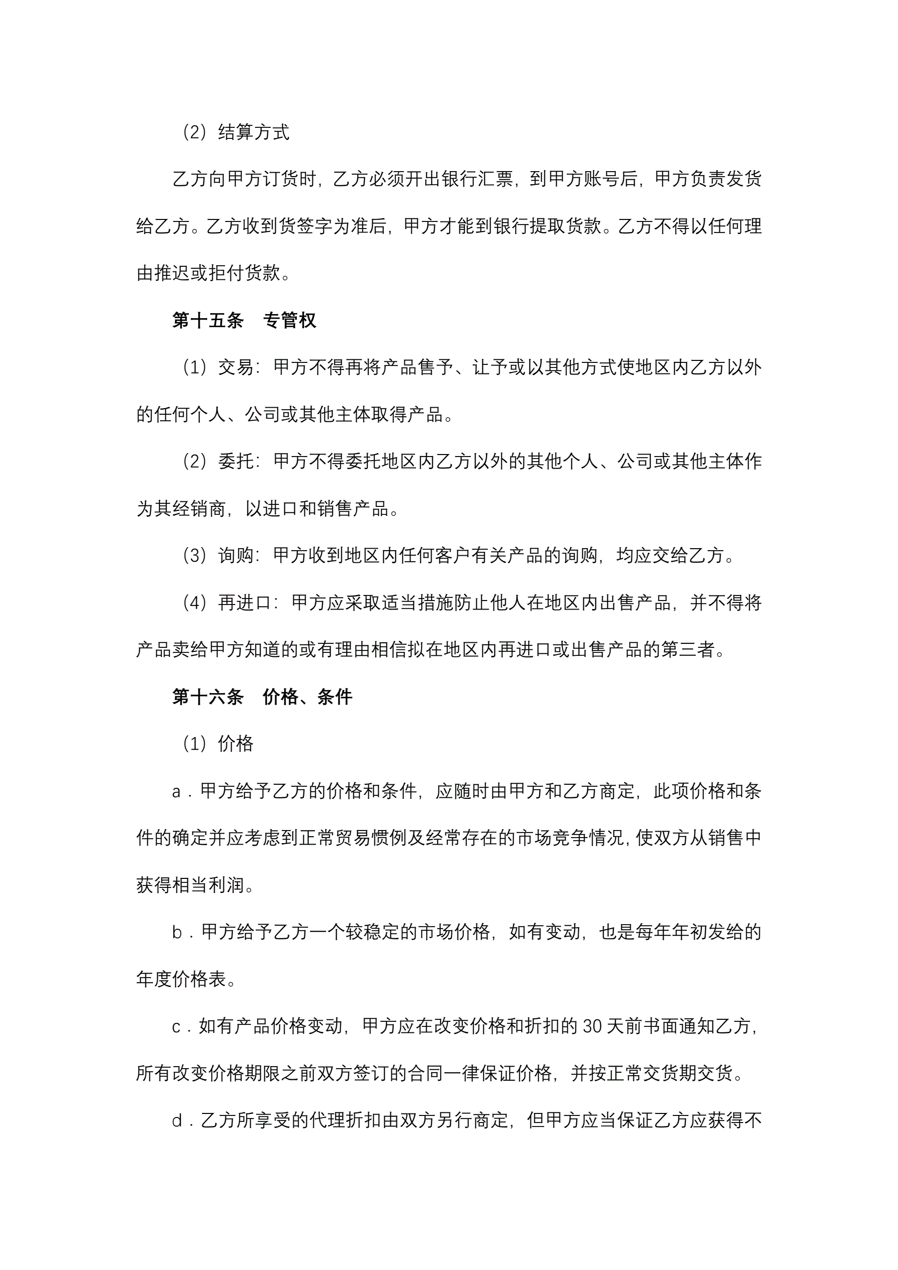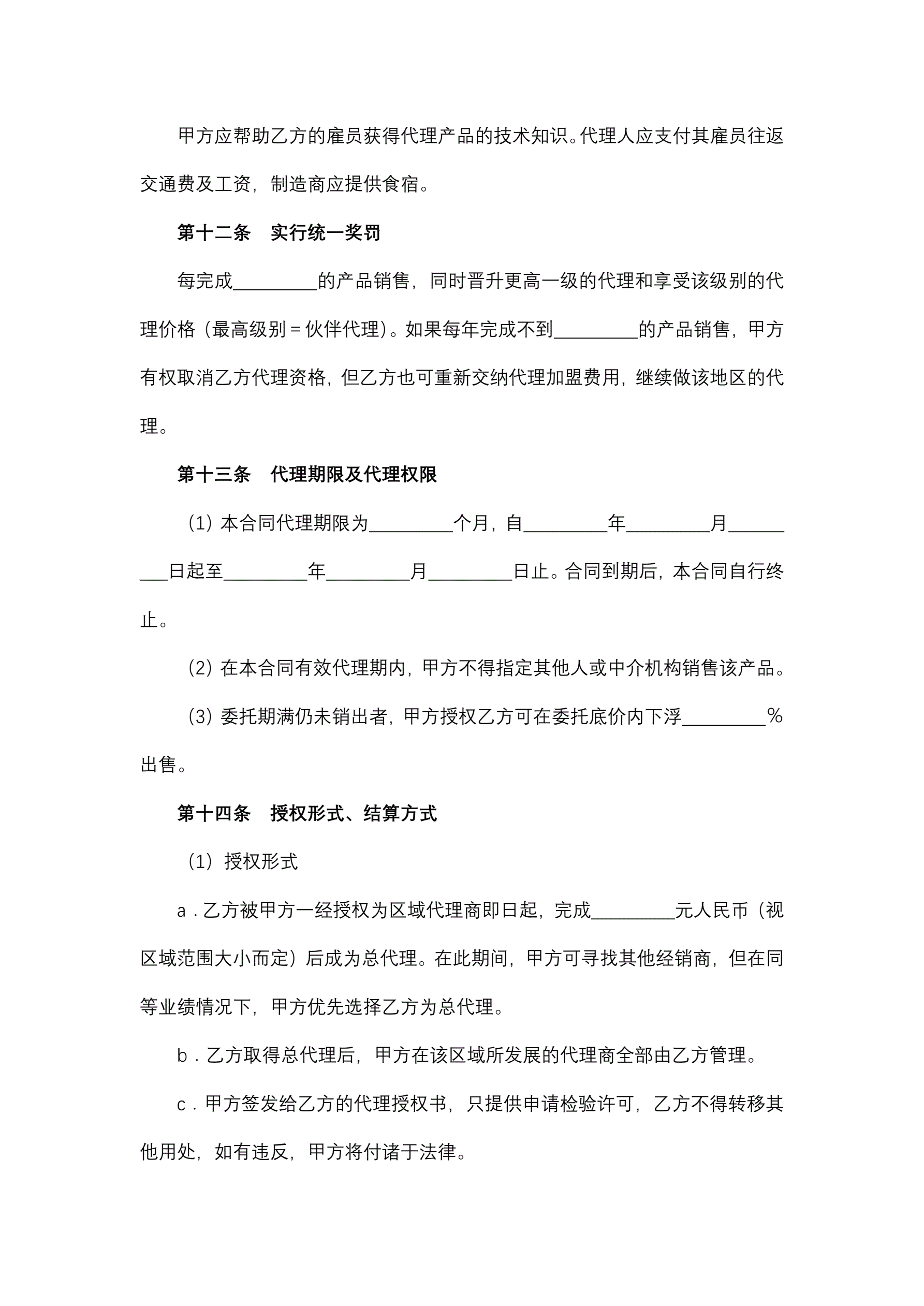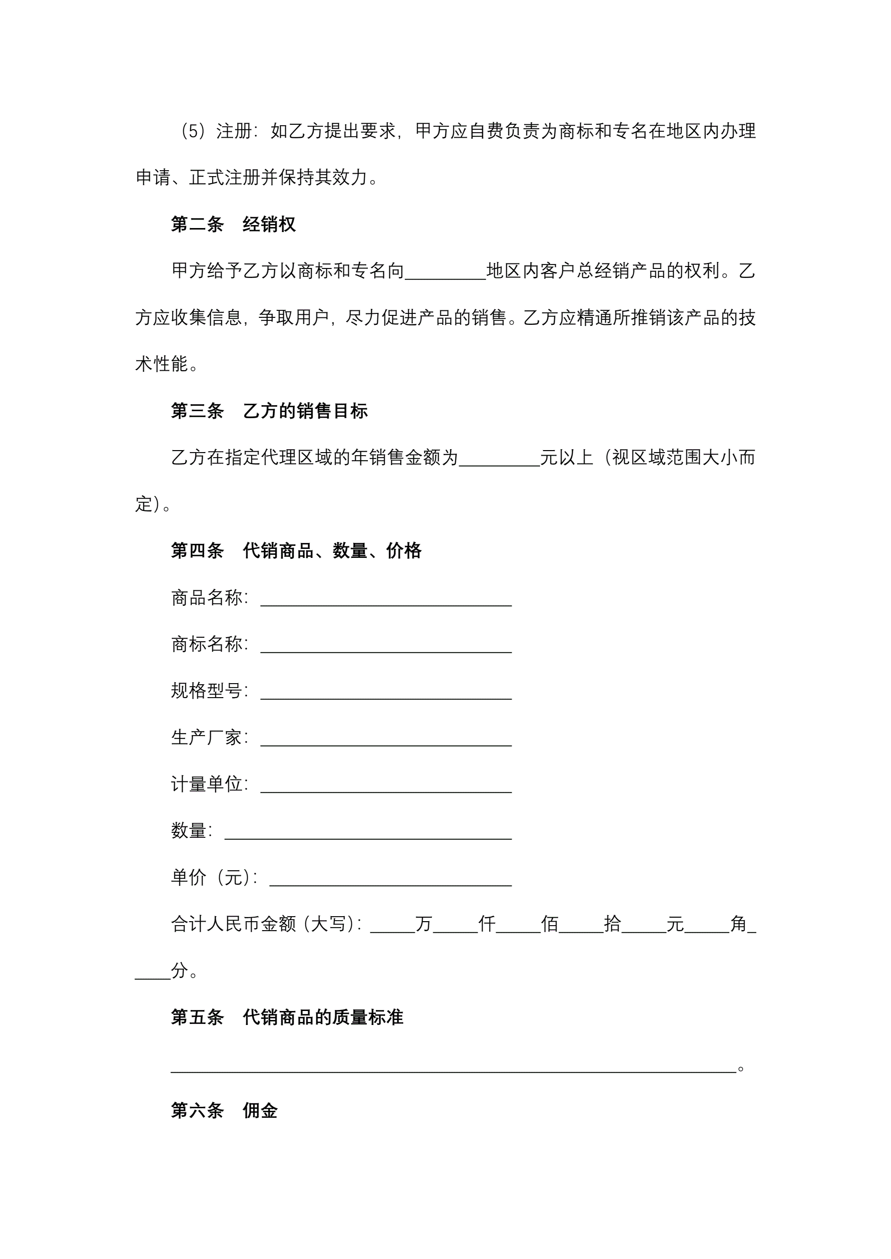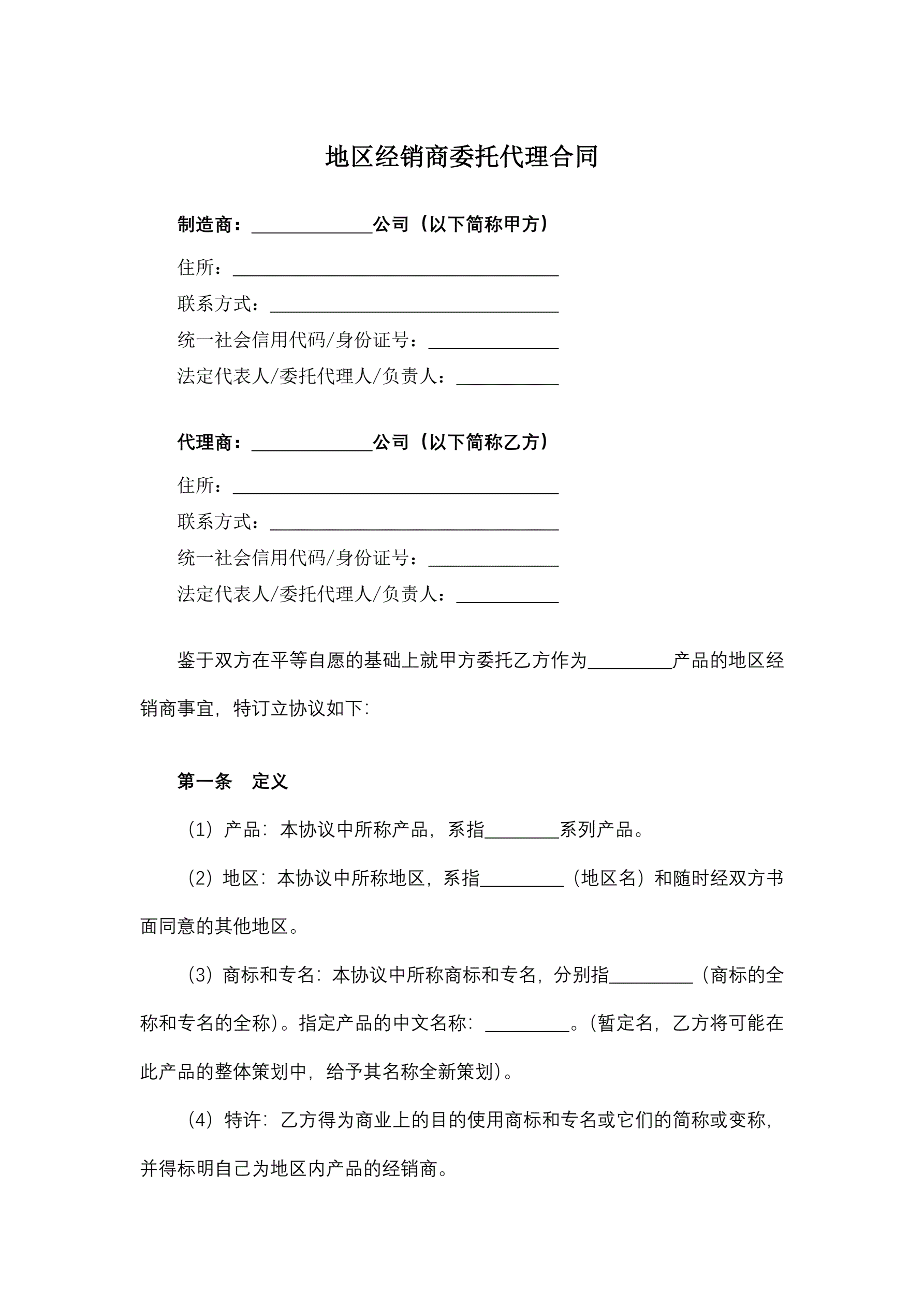 地区经销商委托代理合同