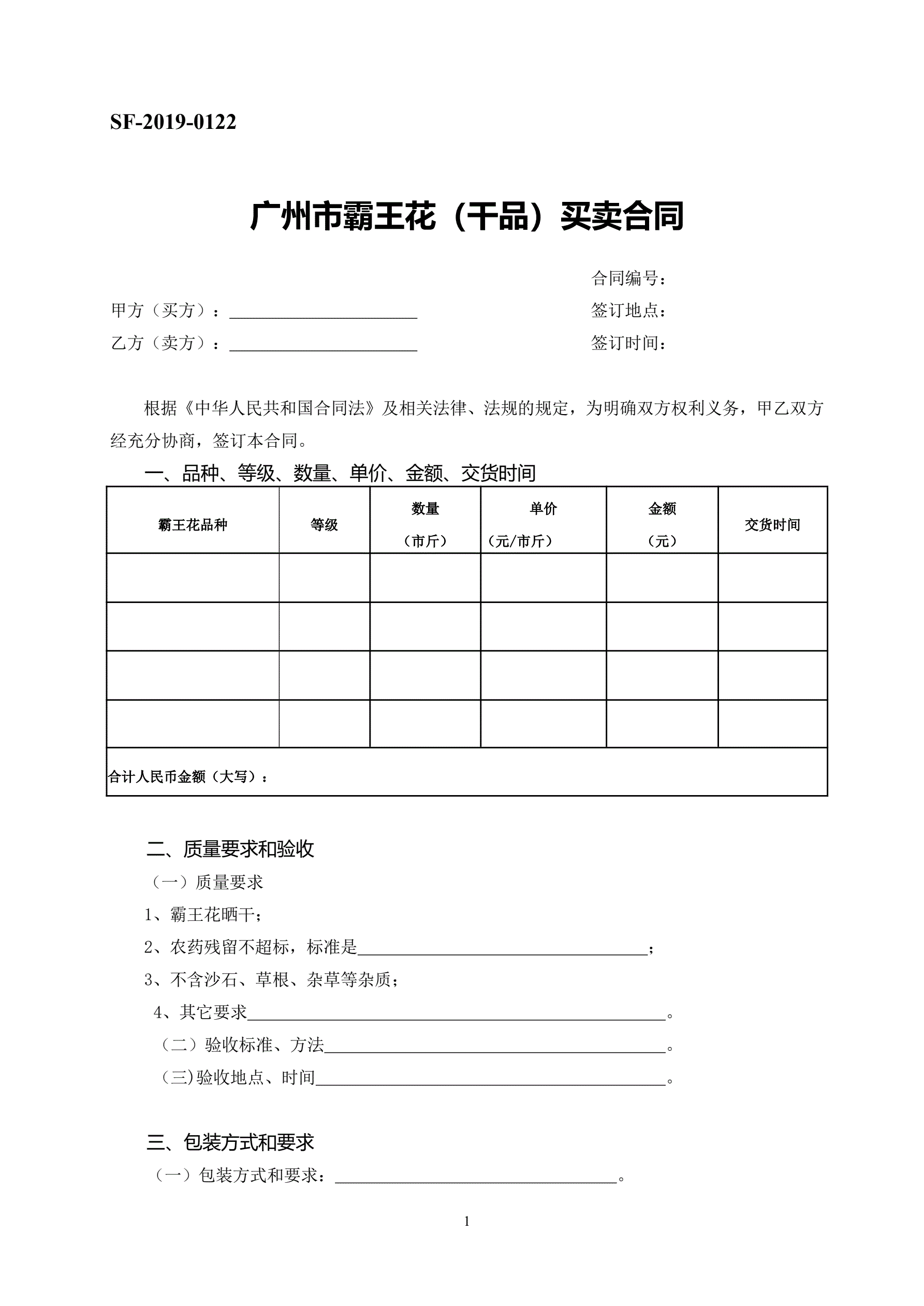 >广州市霸王花(干品)买卖合同