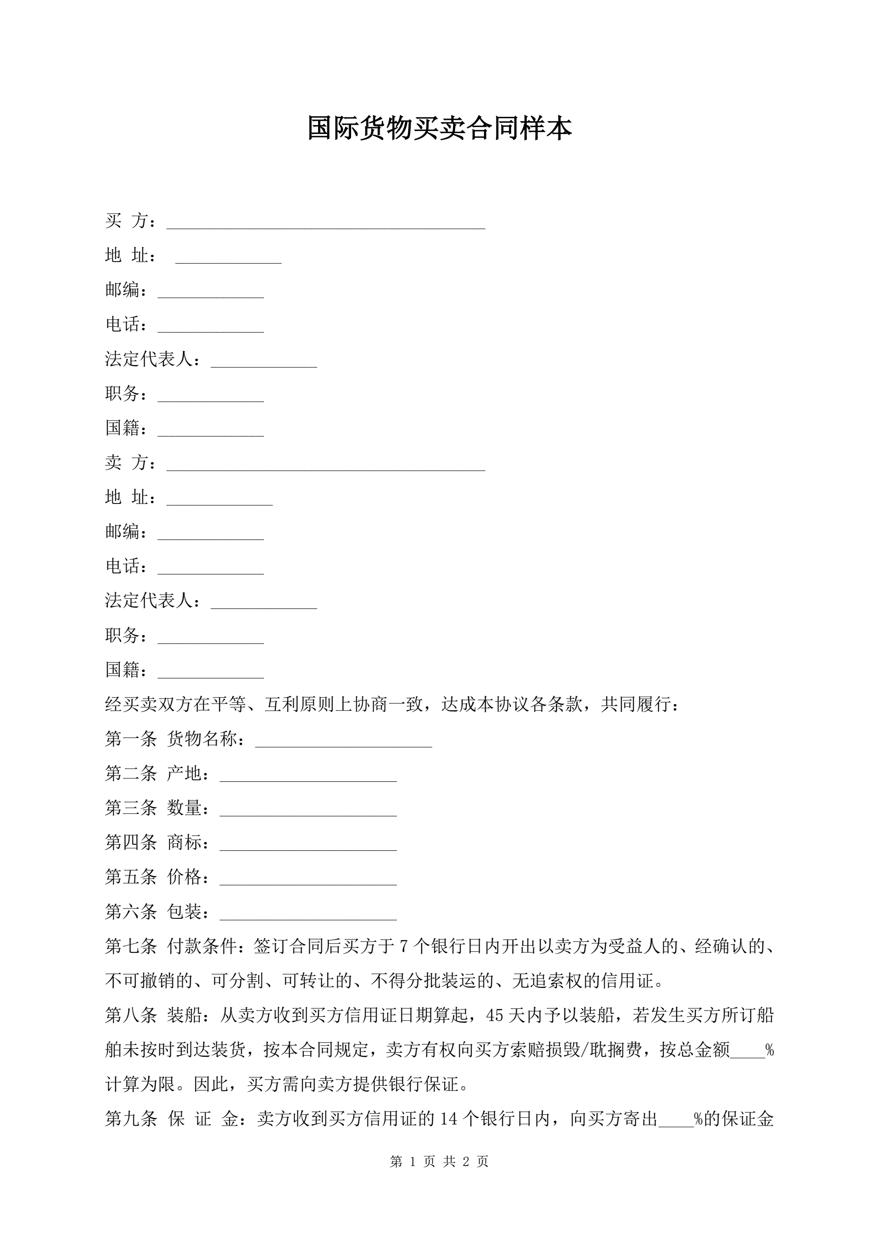 国际货物买卖合同样本