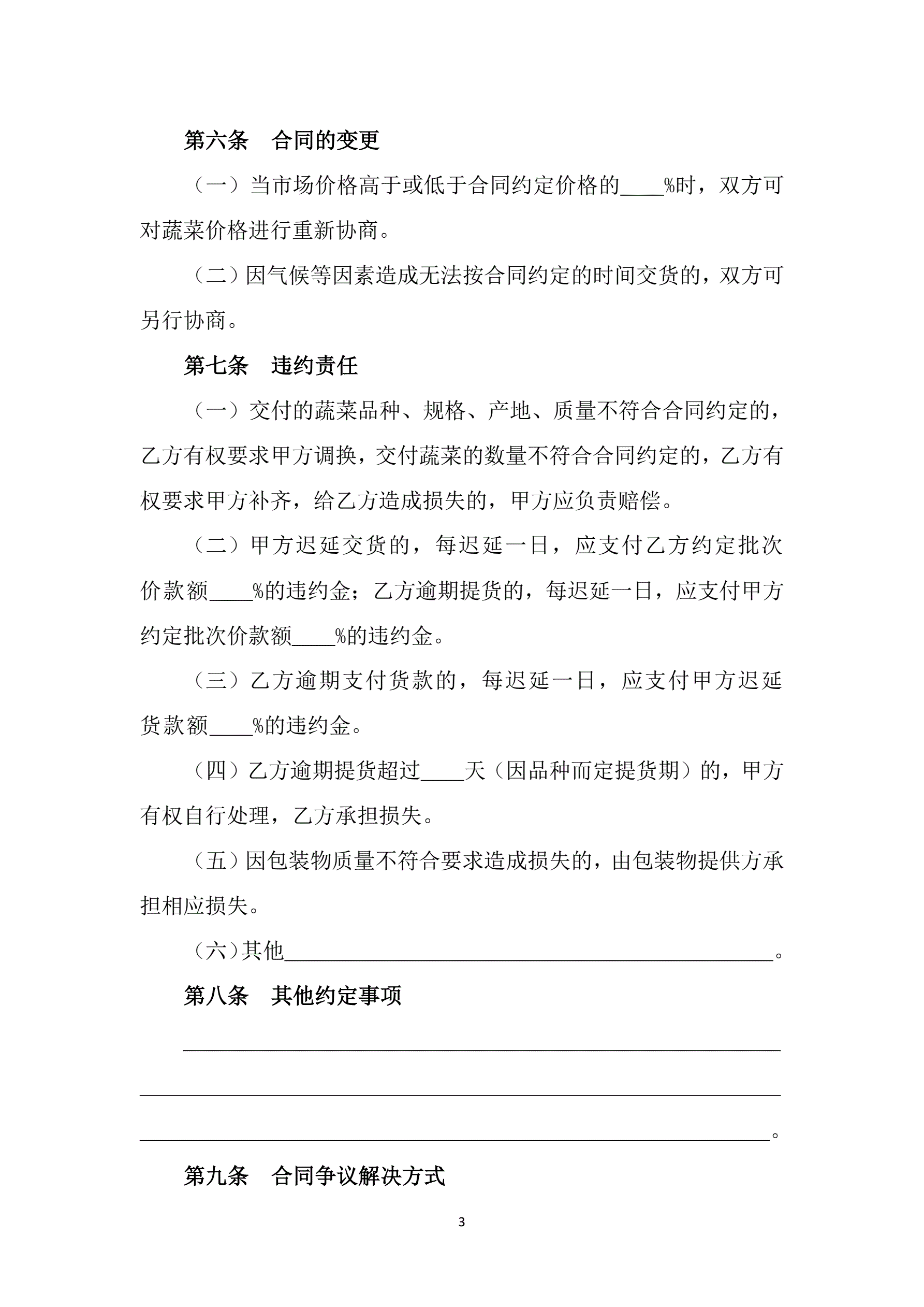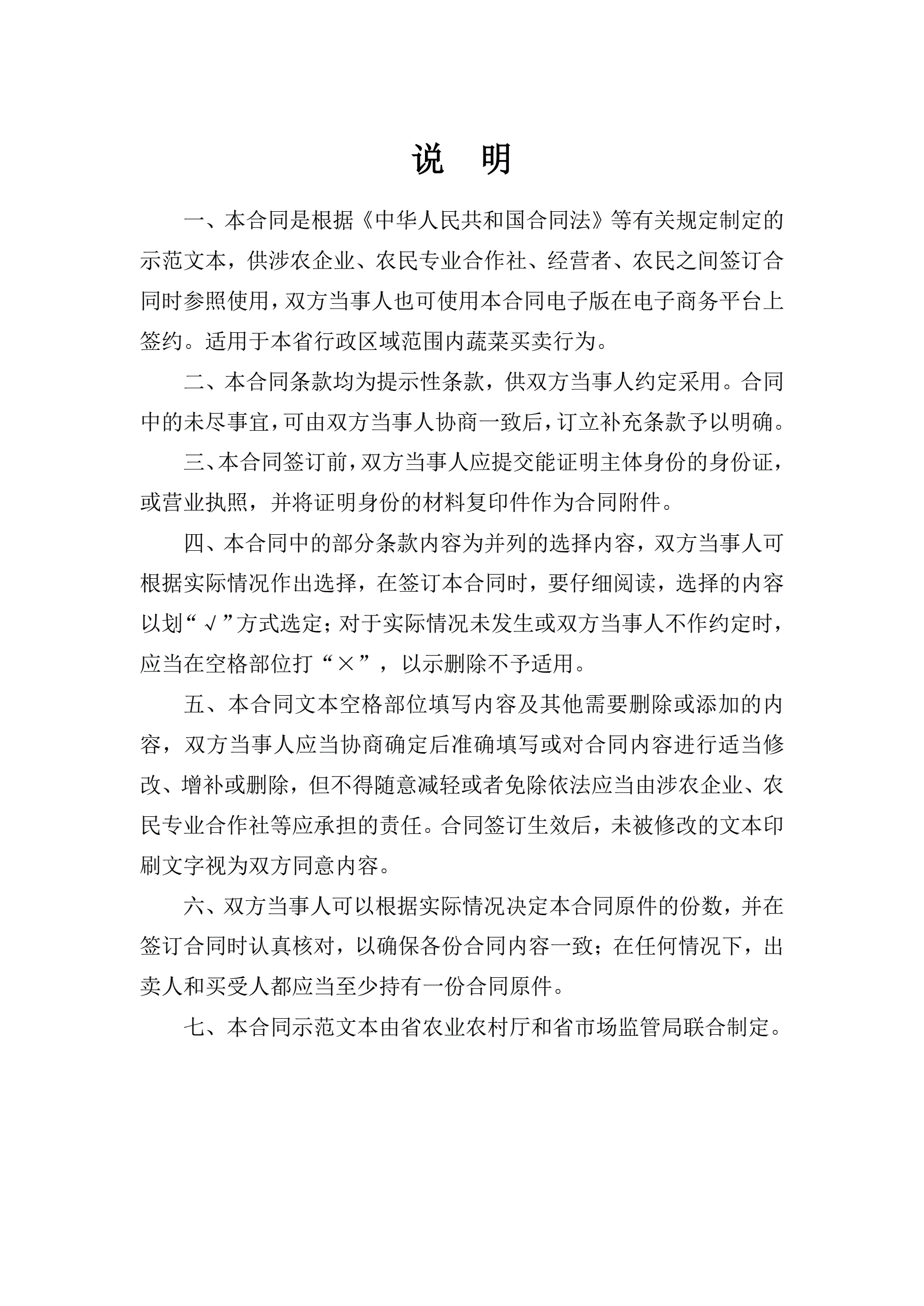 >山西省蔬菜买卖合同