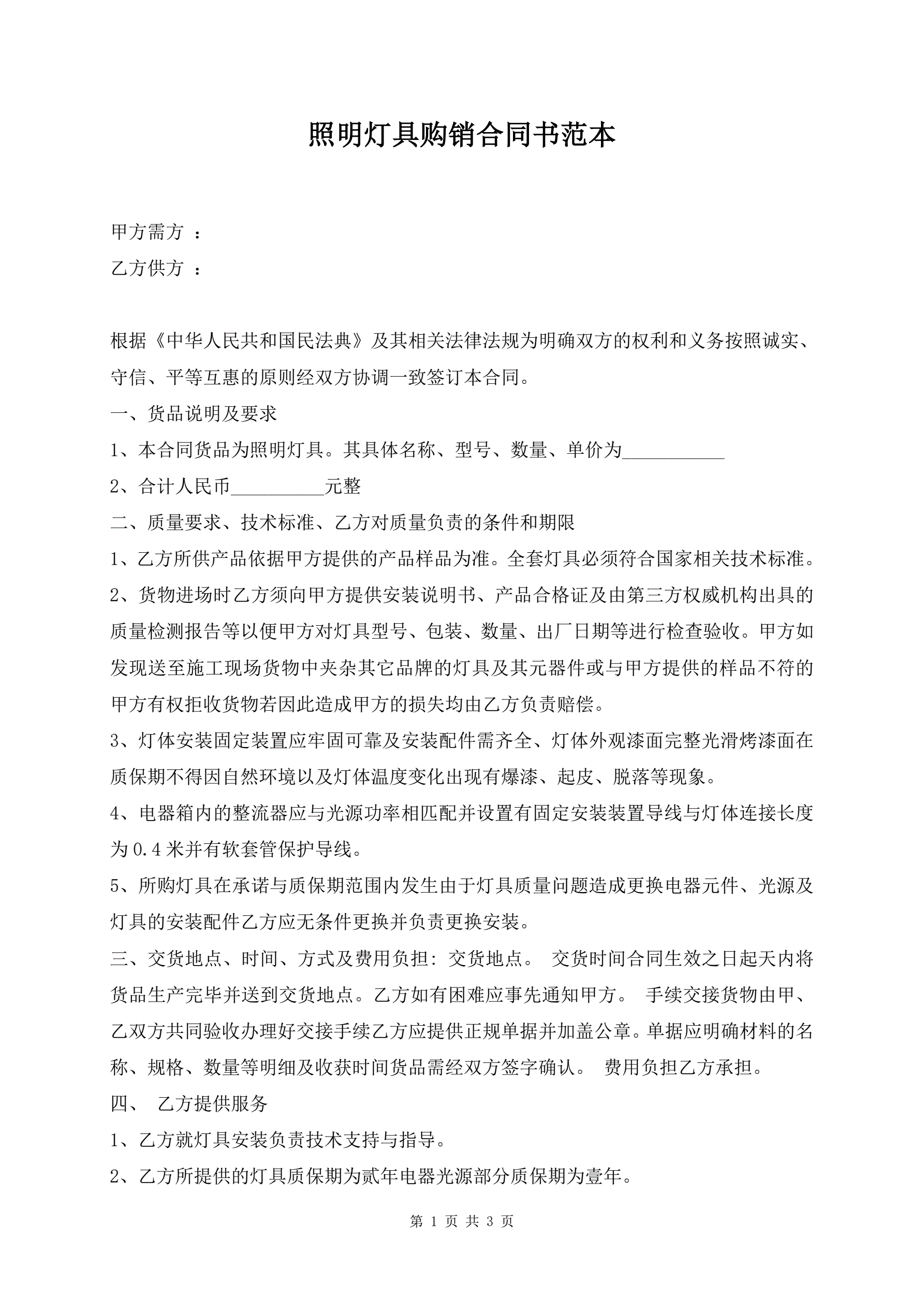 照明灯具购销合同书范本