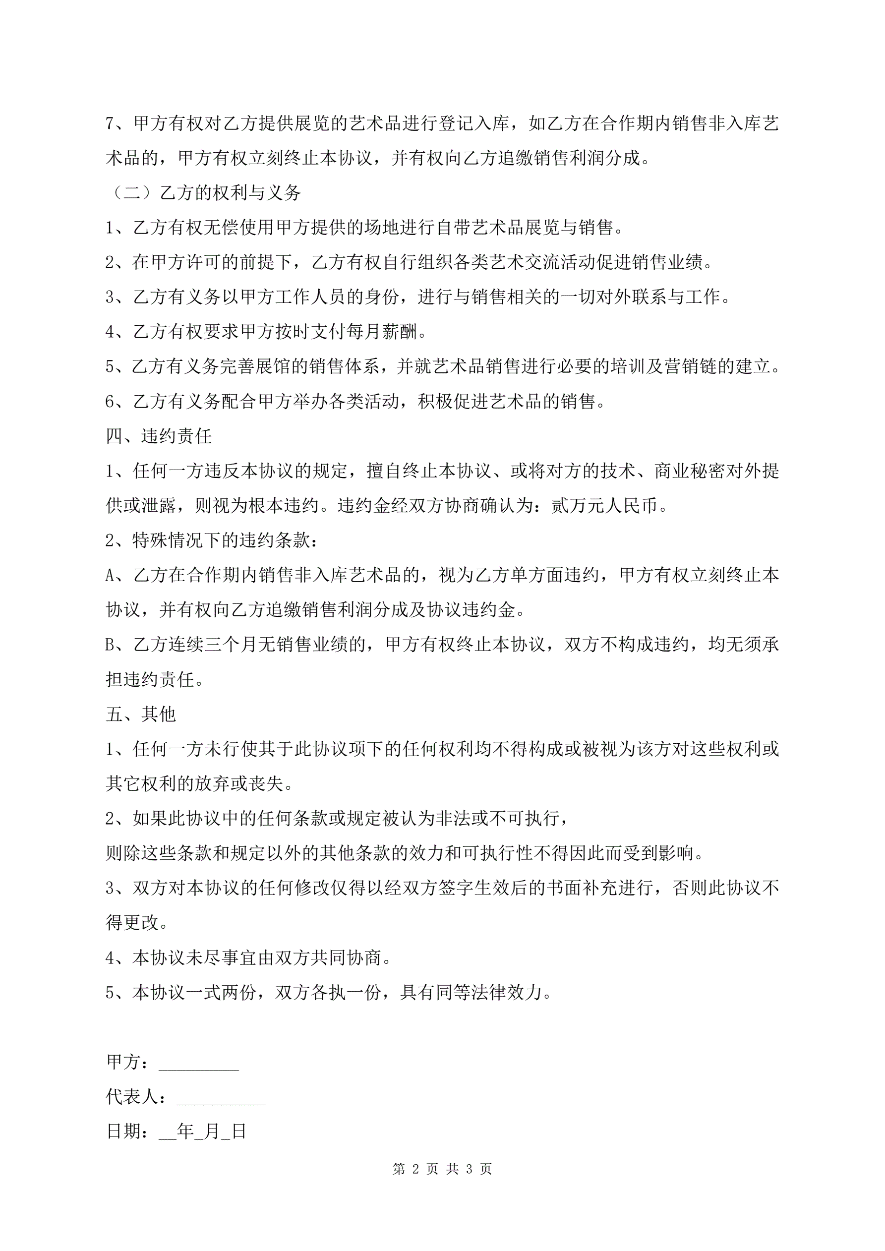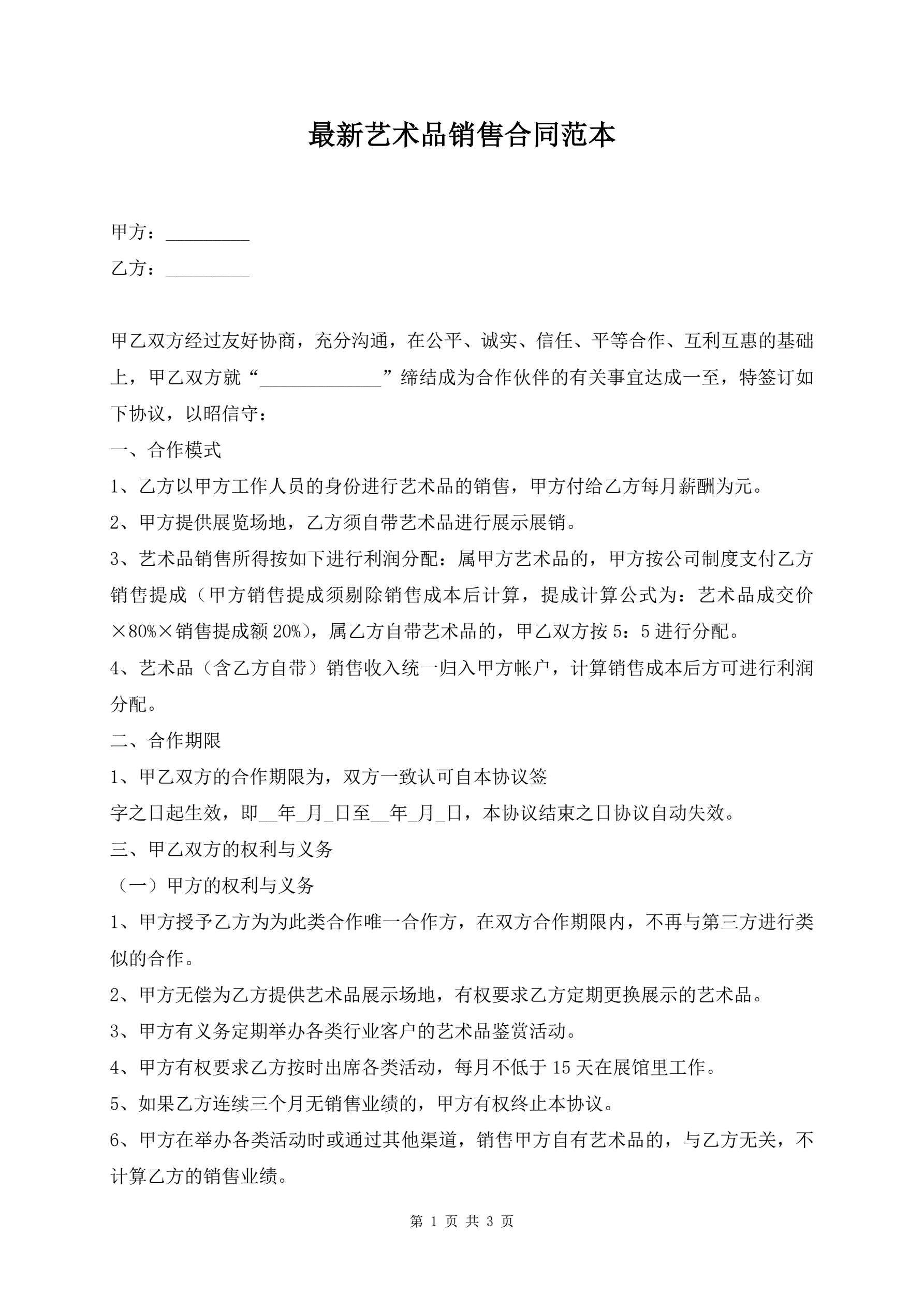 最新艺术品销售合同范本