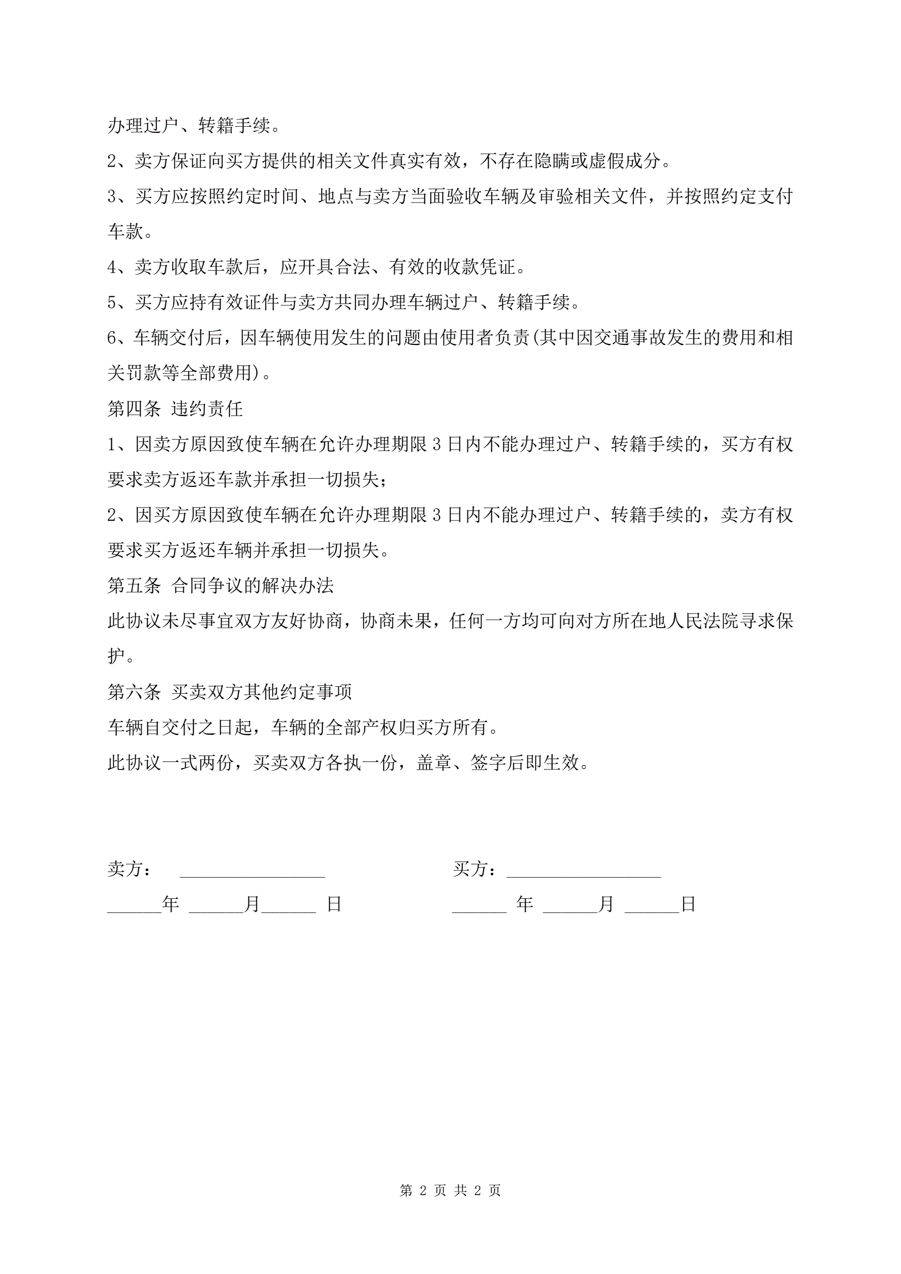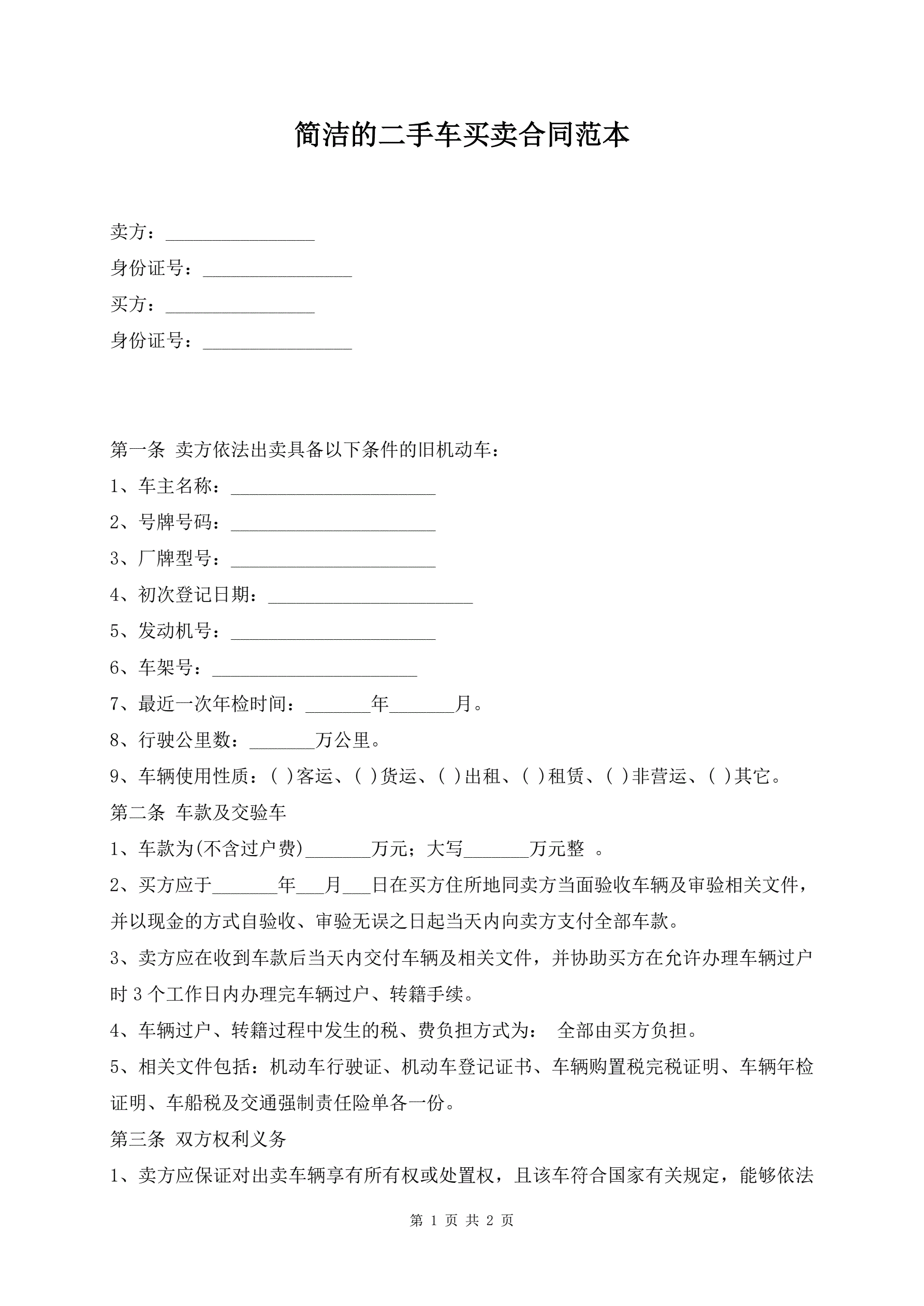 简洁的二手车买卖合同范本
