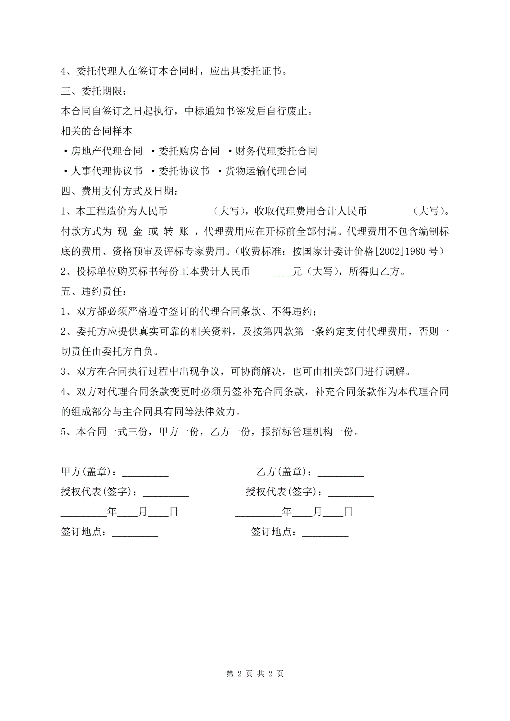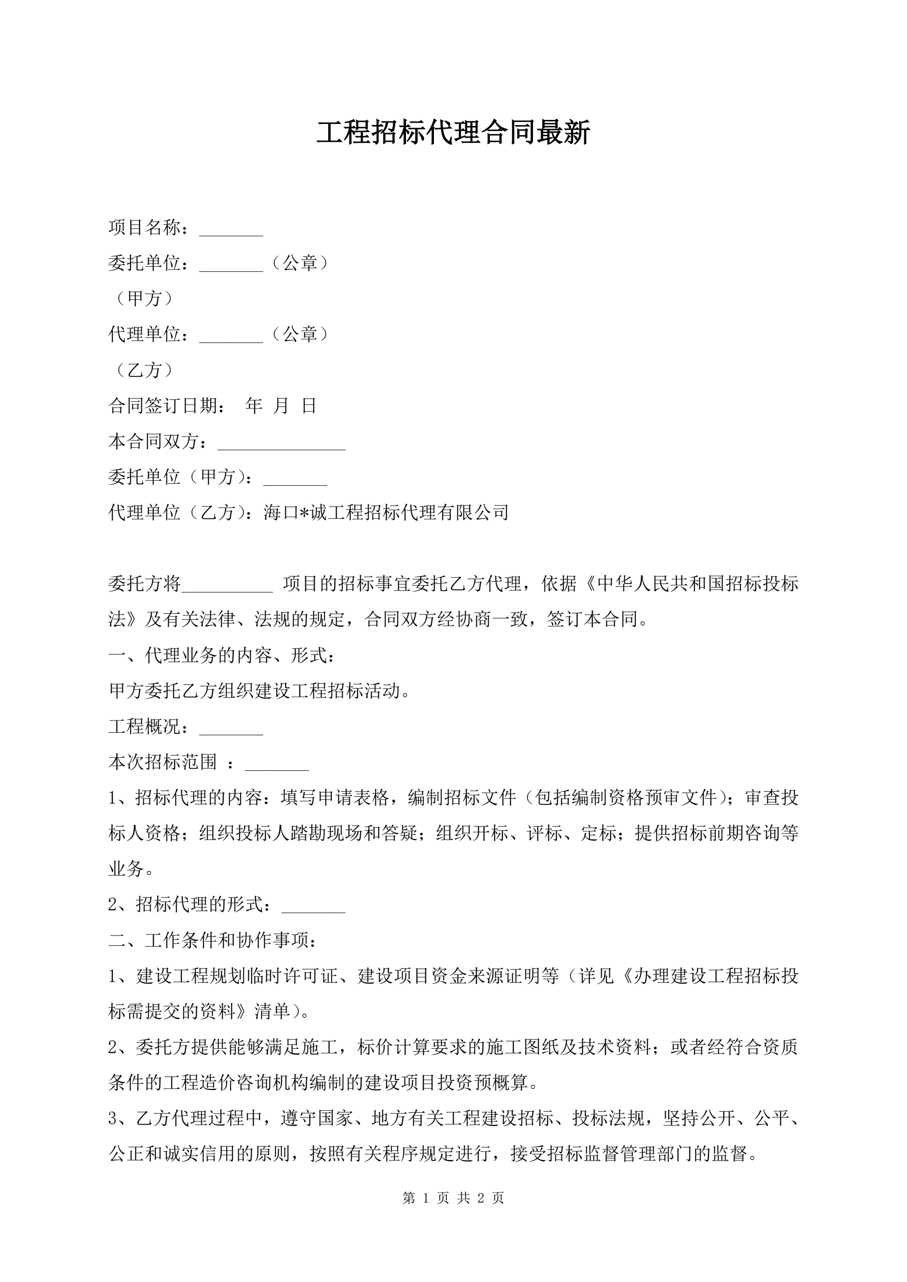 >工程招标代理合同最新
