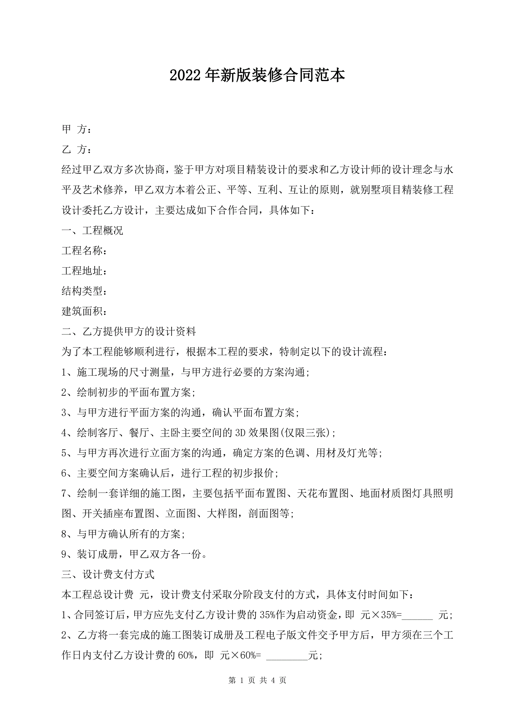 2022年新版装修合同范本