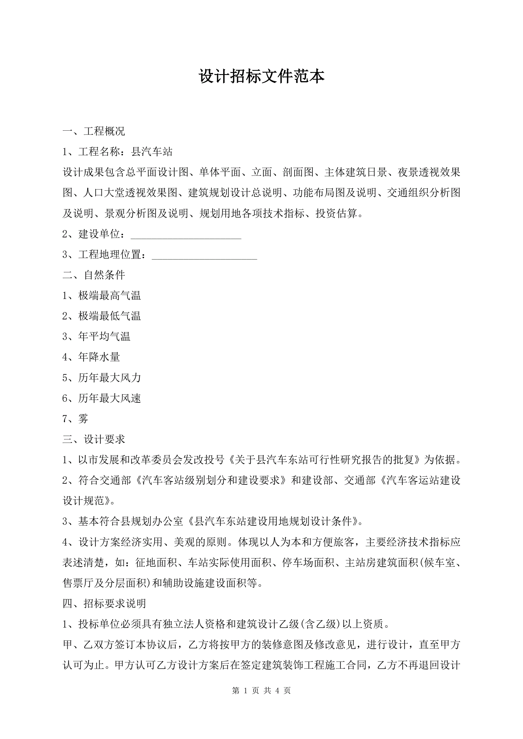 设计招标文件范本