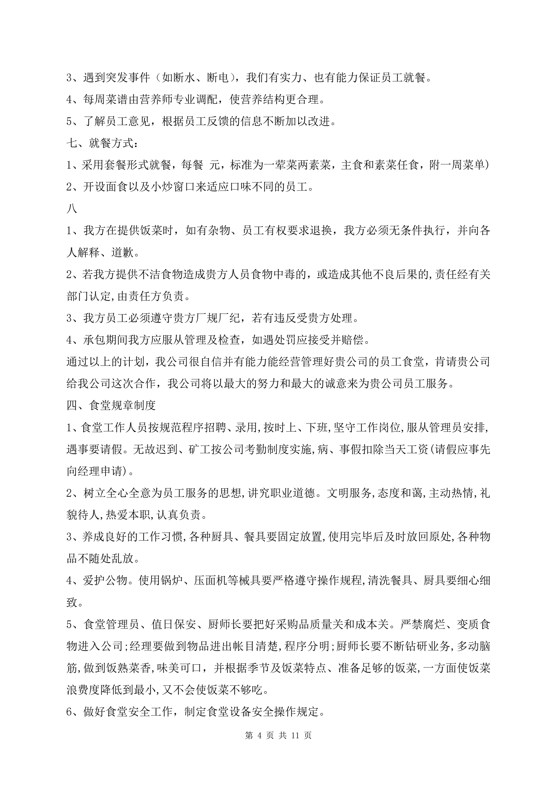 >职工食堂投标书范文