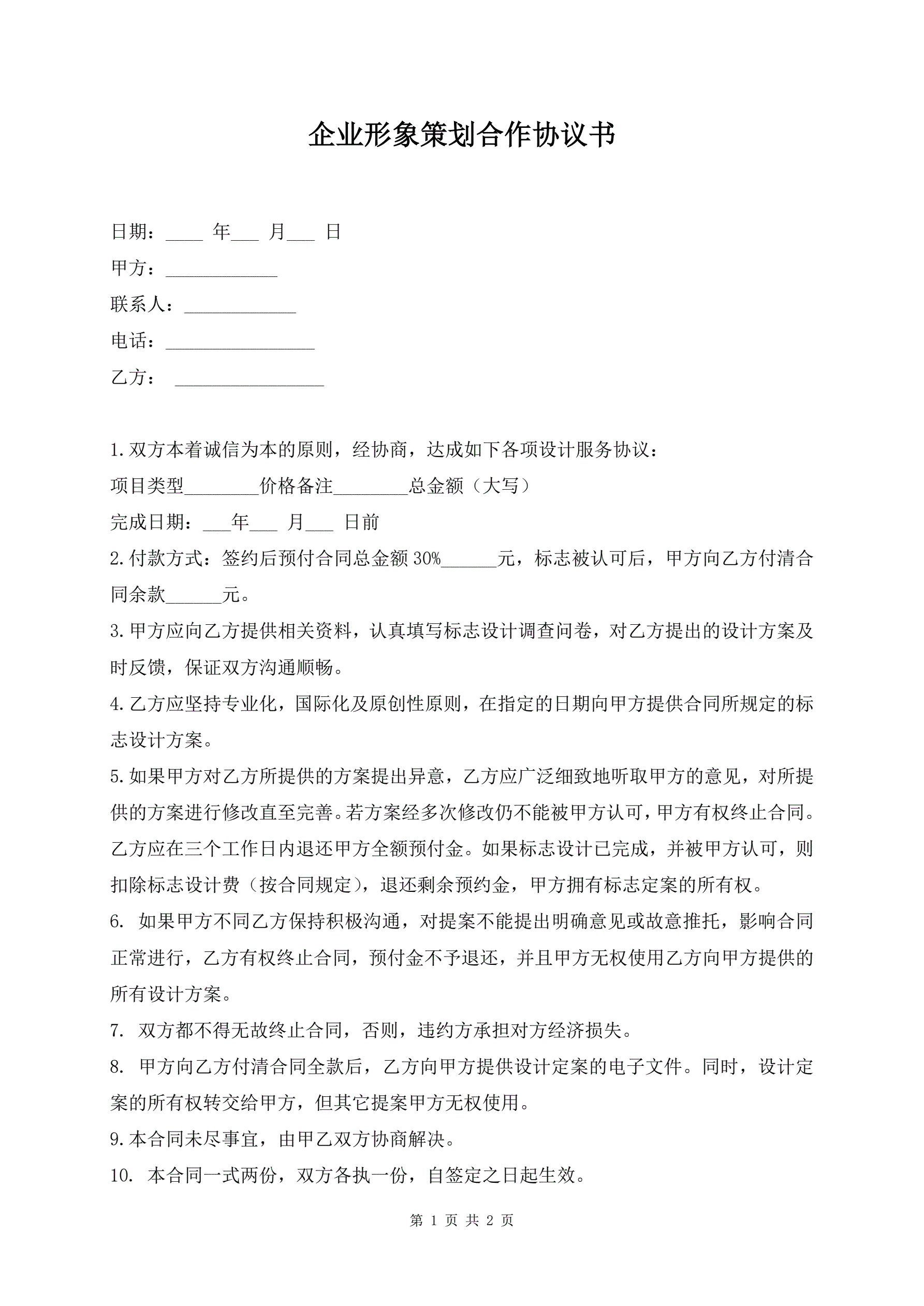 企业形象策划合作协议书