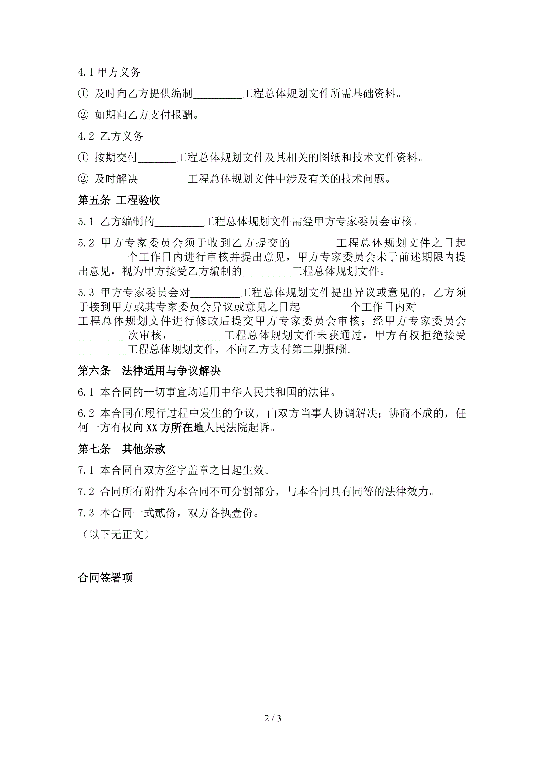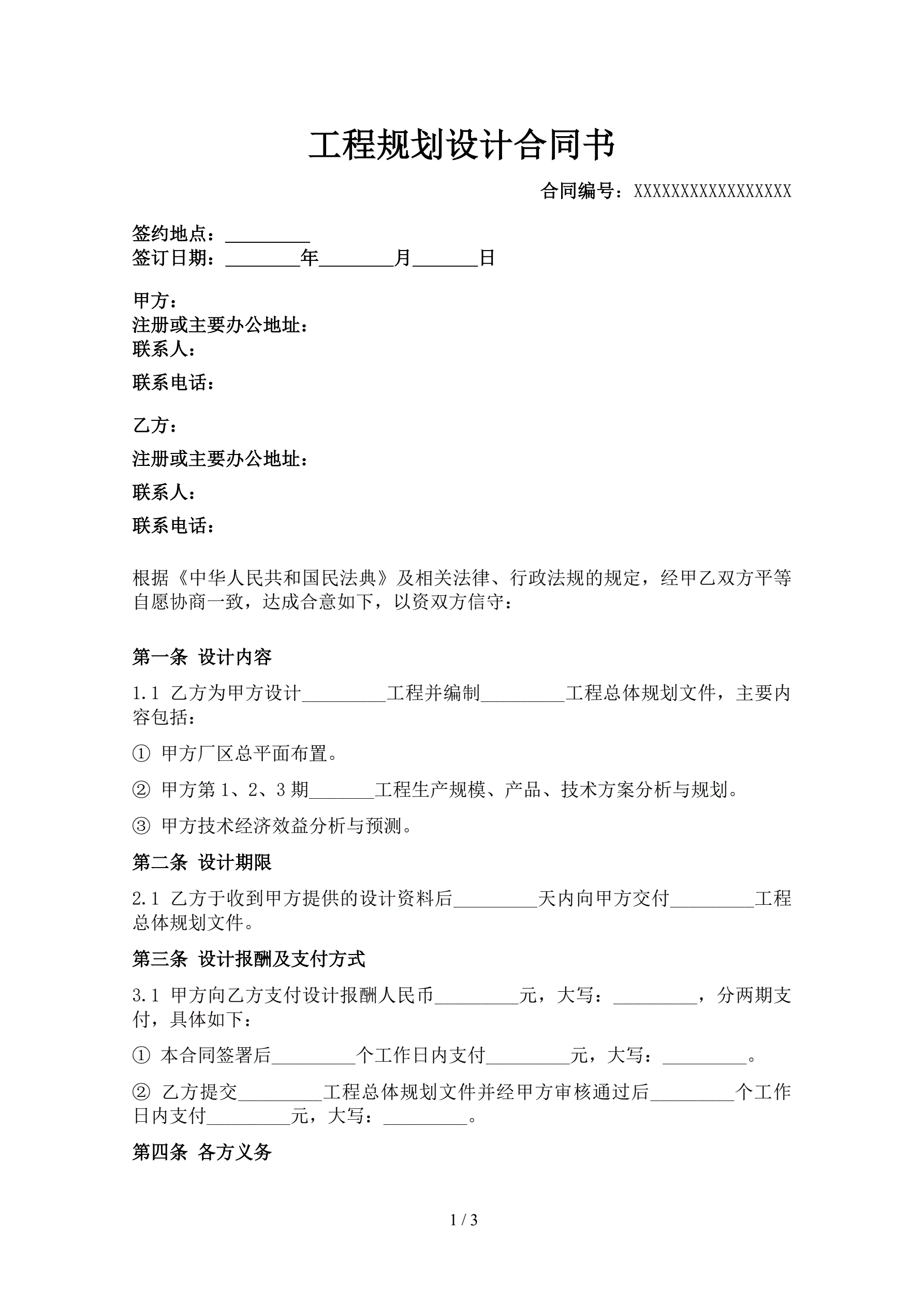 >工程规划设计合同书