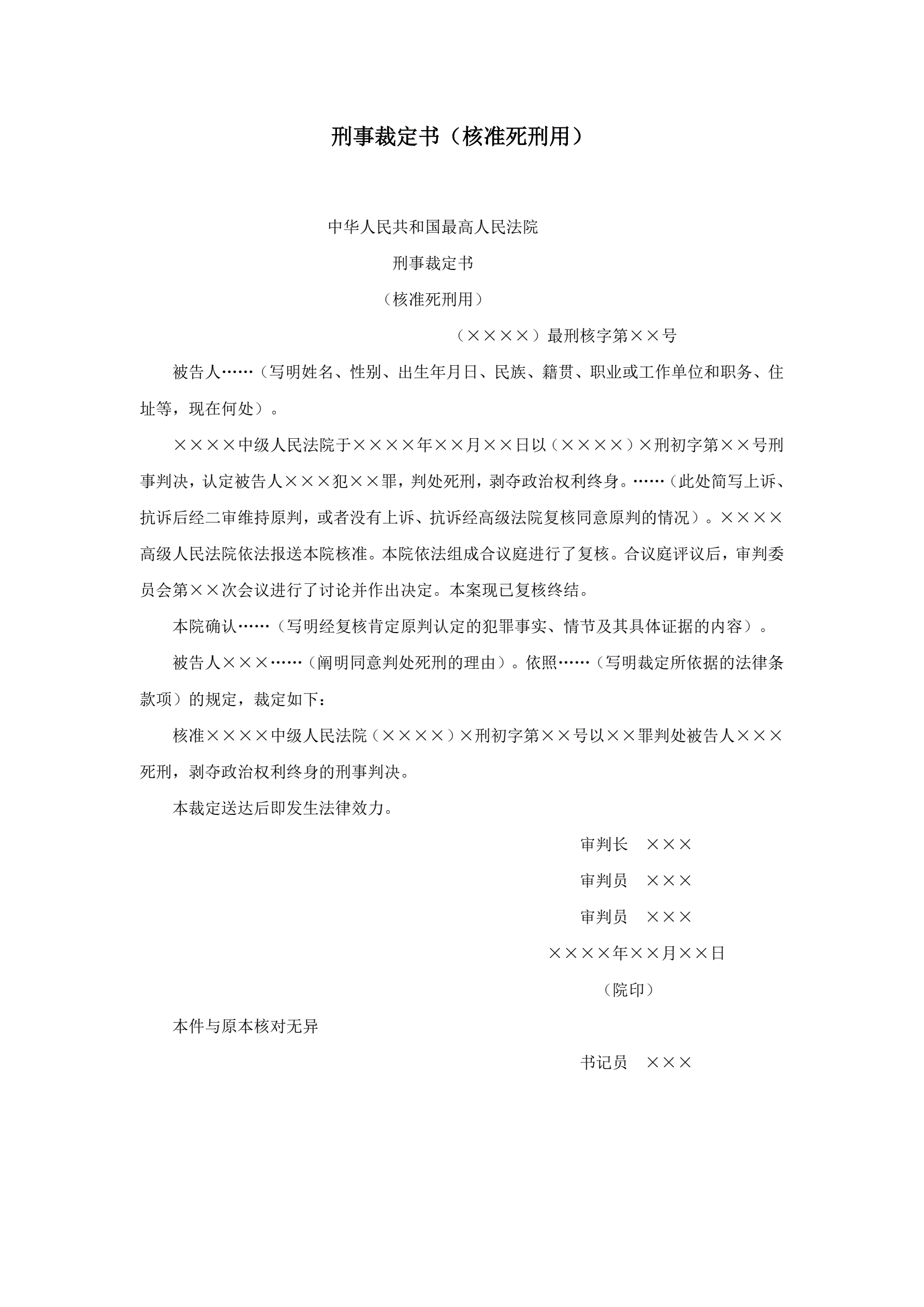 >刑事裁定书(核准死刑用)