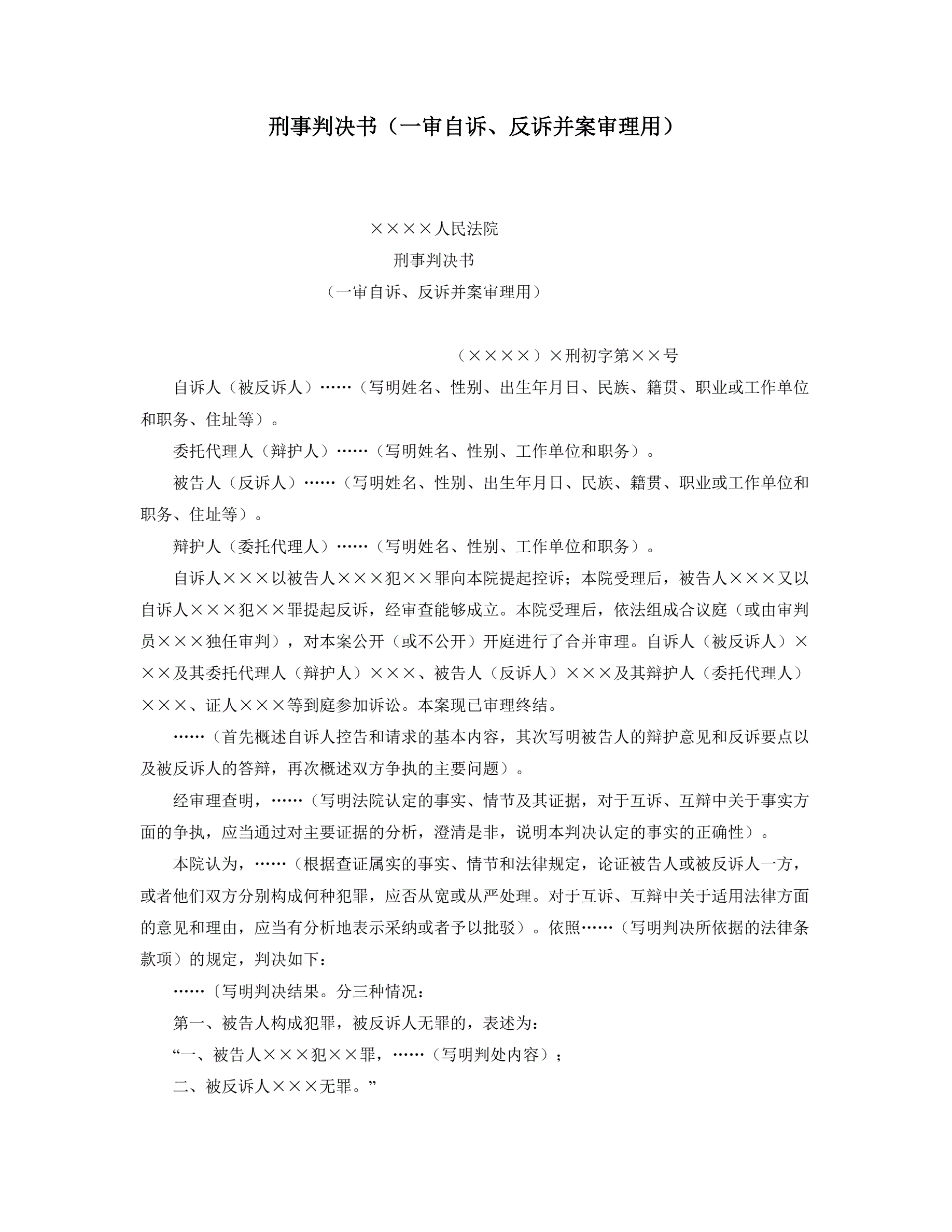 >刑事判决书(一审自诉、反诉并案审理用)