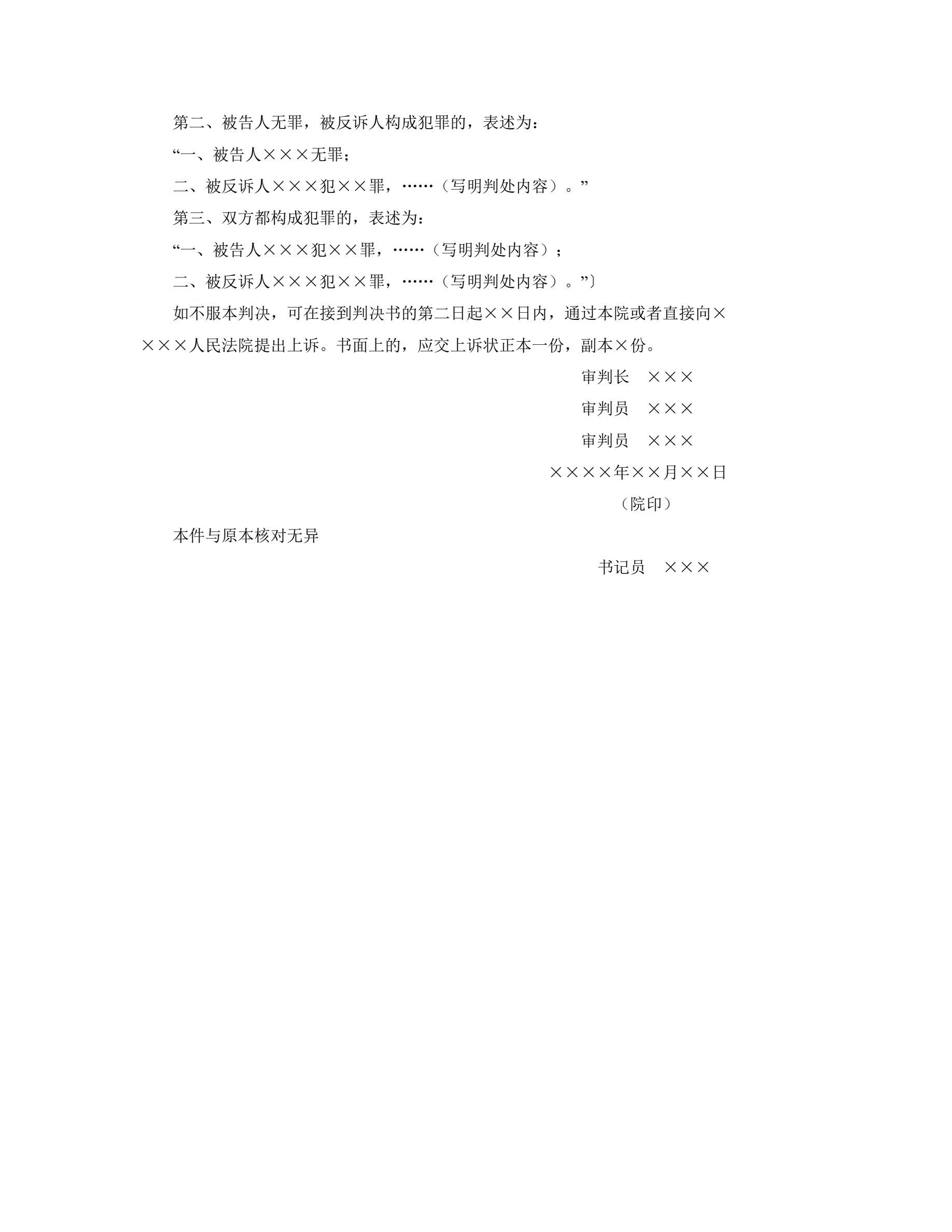 刑事判决书(一审自诉、反诉并案审理用)