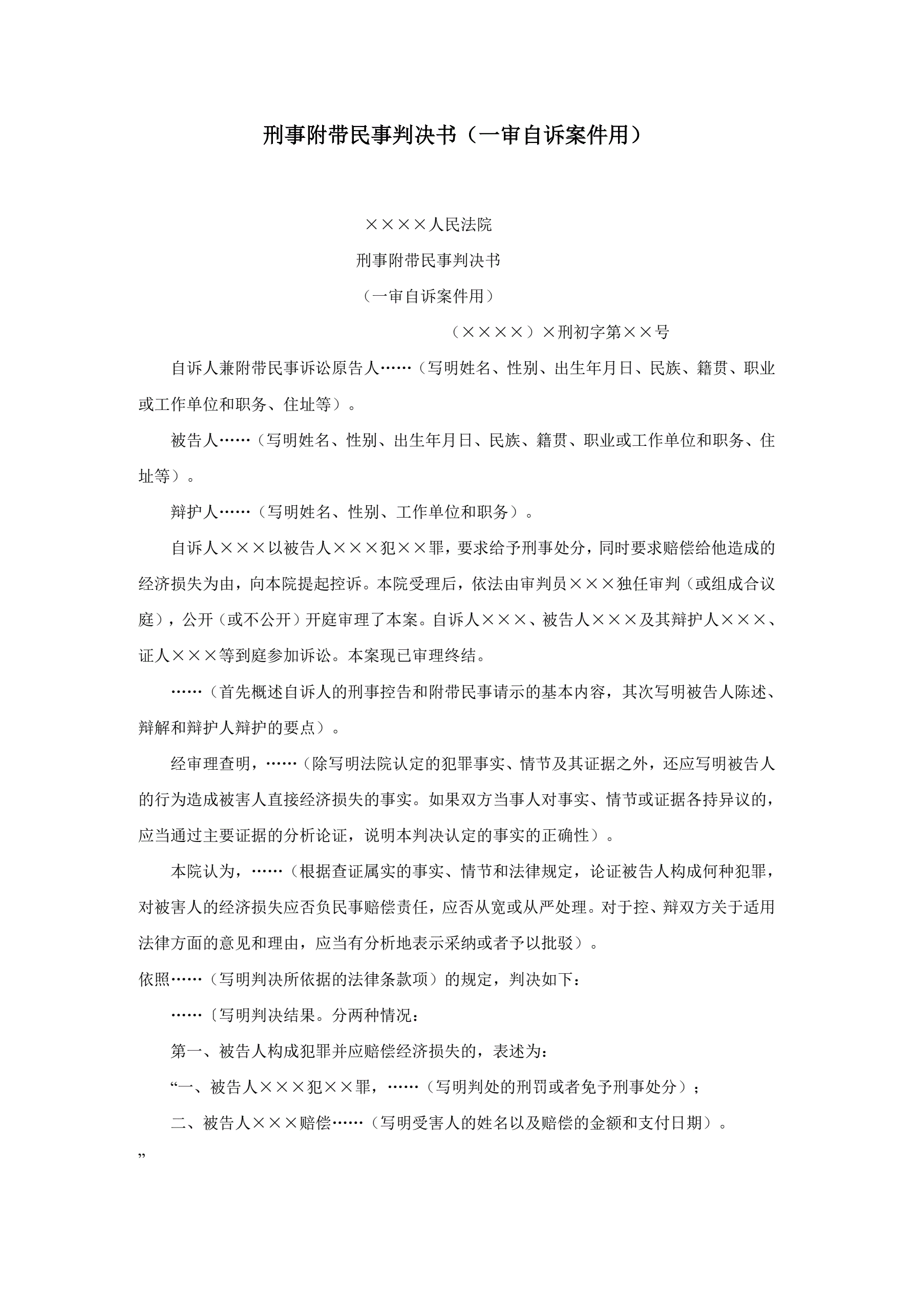 >刑事附带民事判决书(一审自诉案件用)