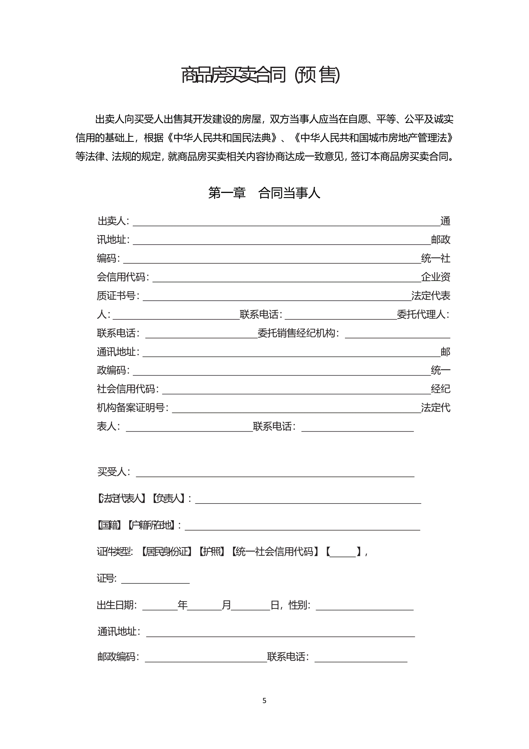 内蒙古自治区商品房买卖合同(预售)示范文本