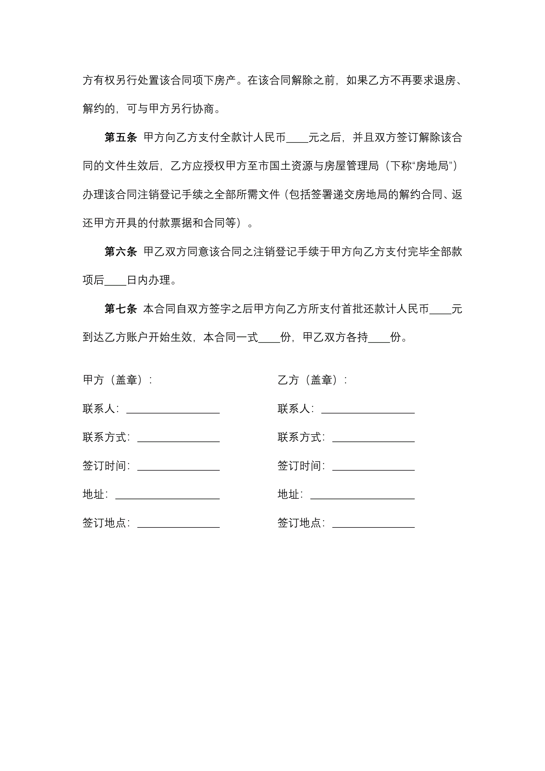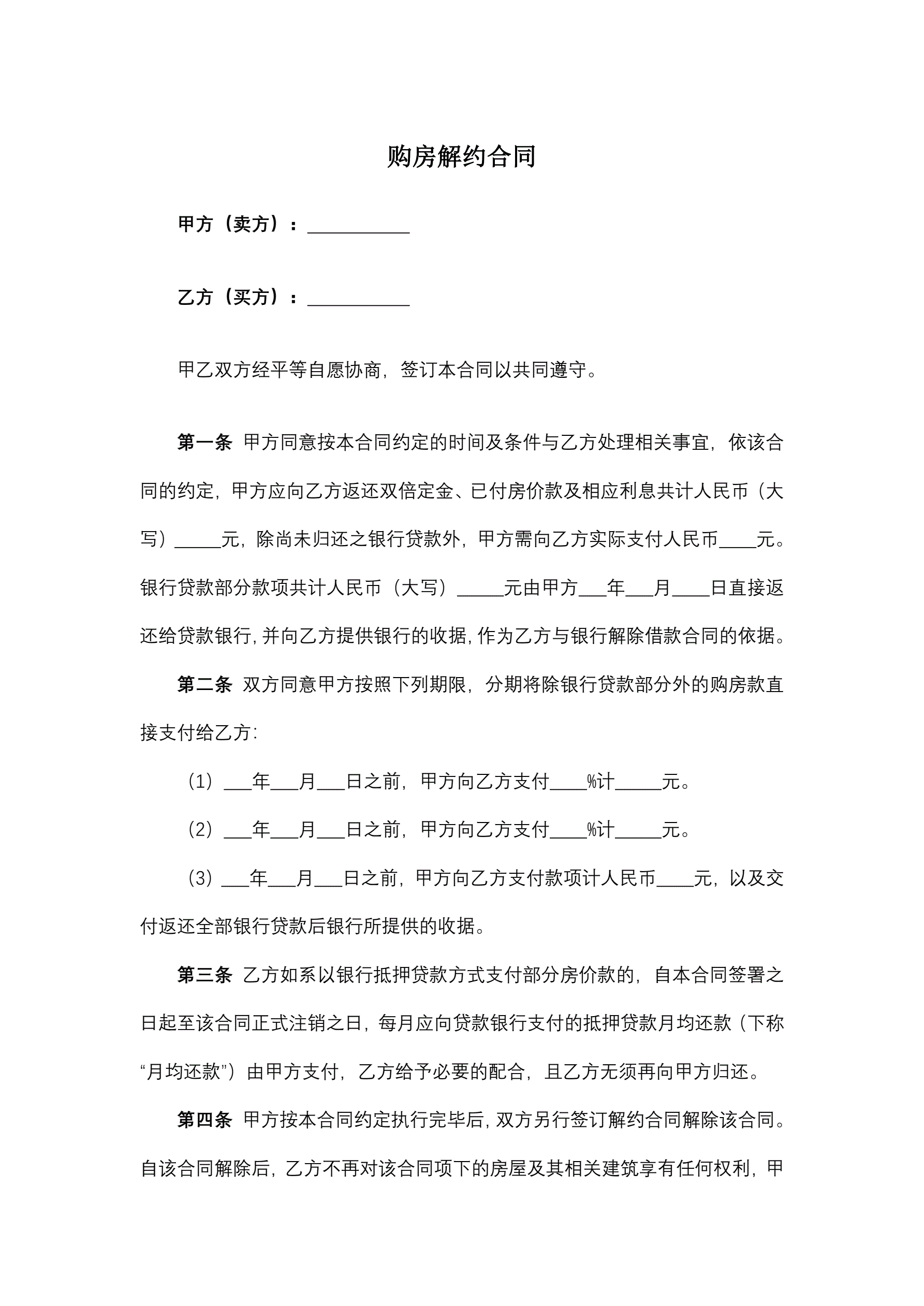 购房解约合同