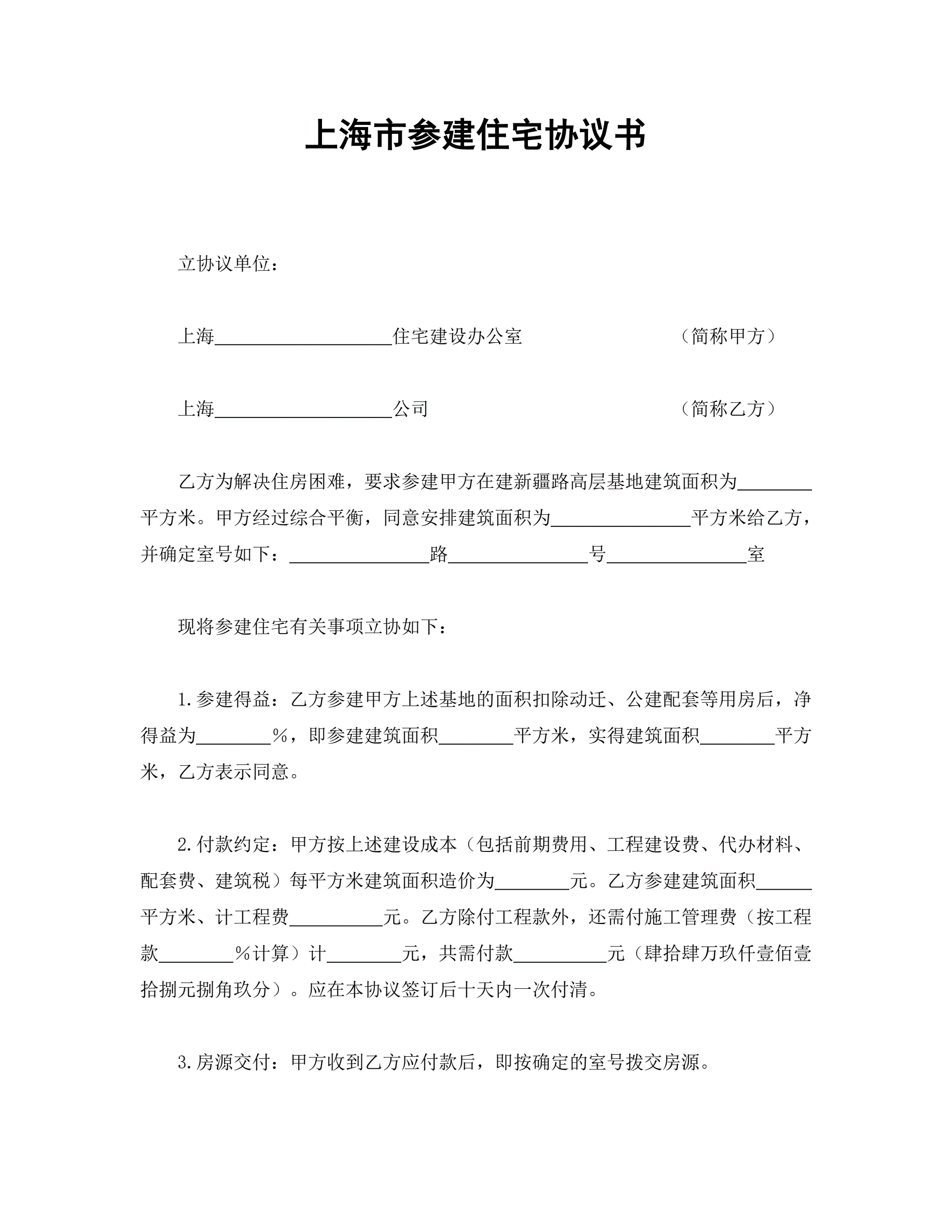 合同名称:上海市参建住宅协议书