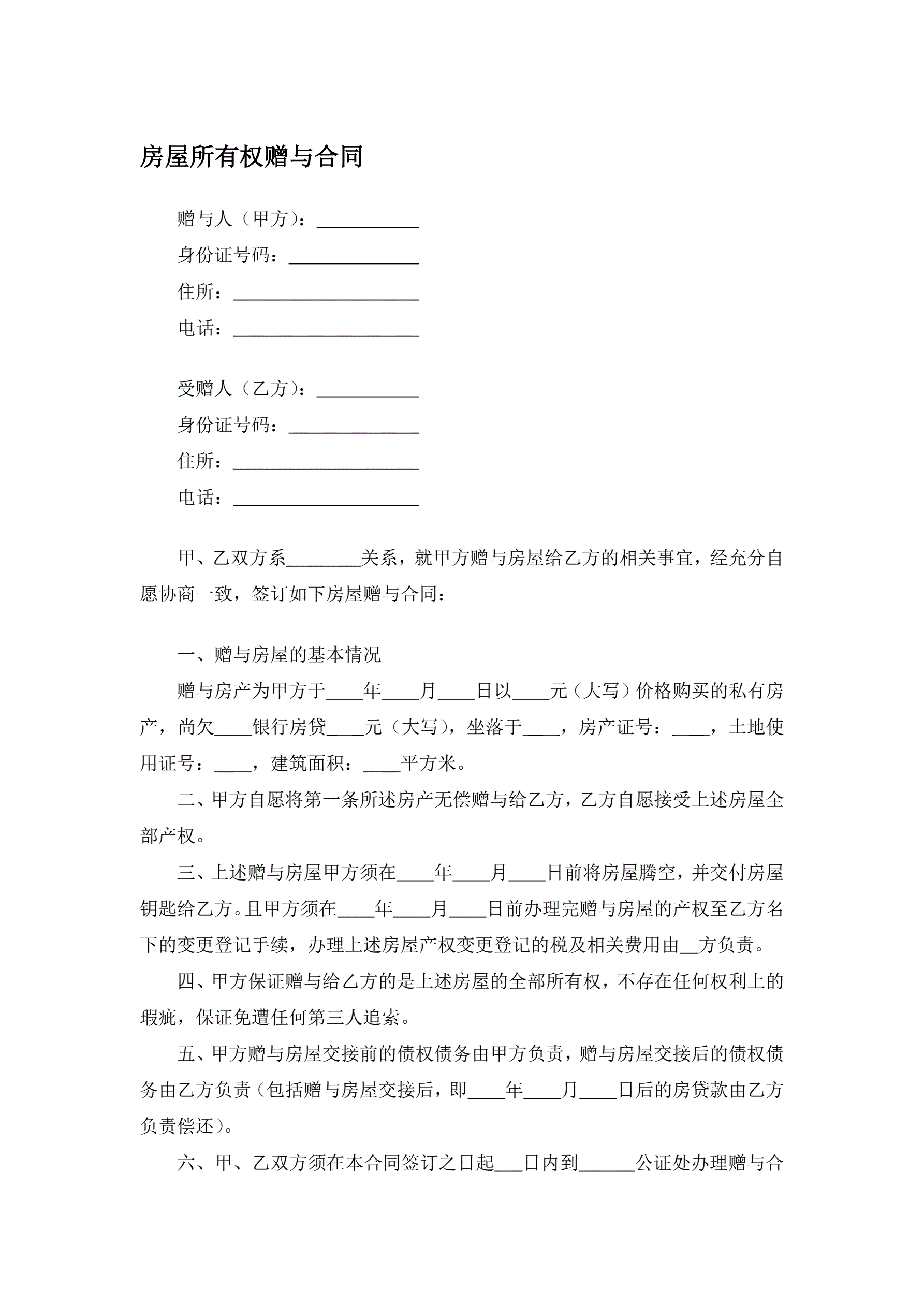 房屋所有权赠与合同