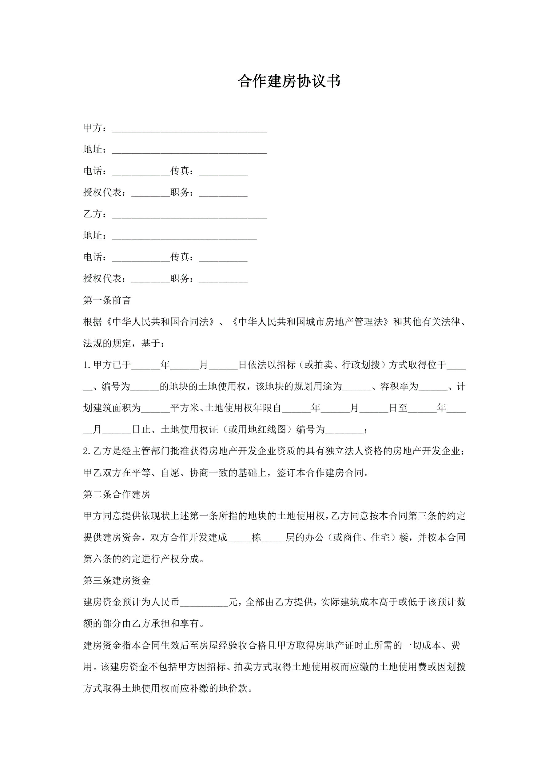>合作建房合同