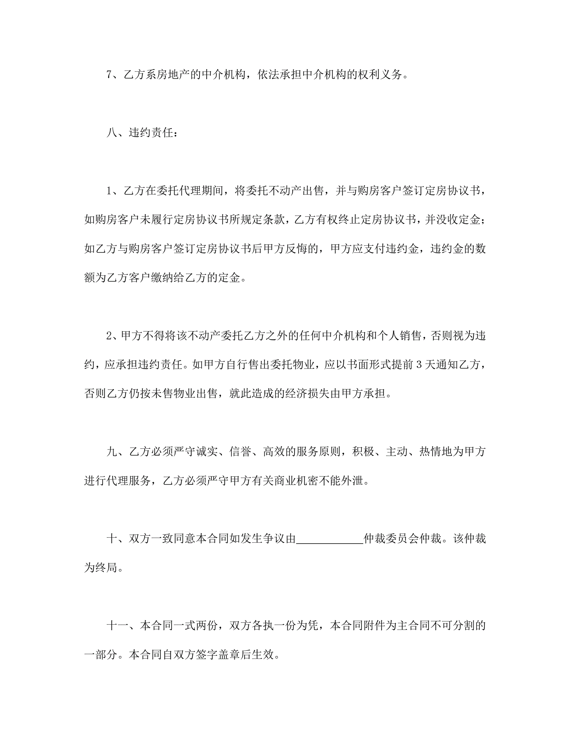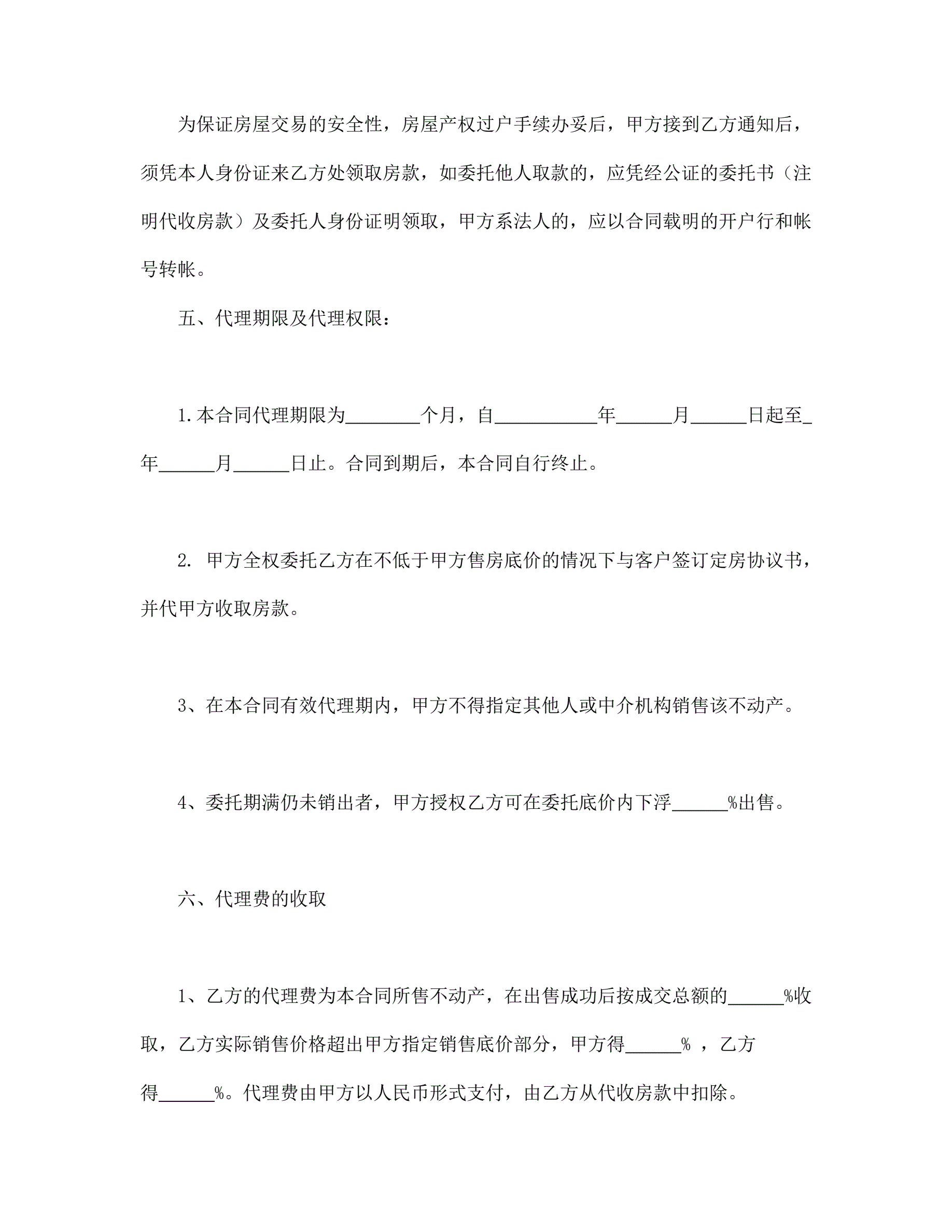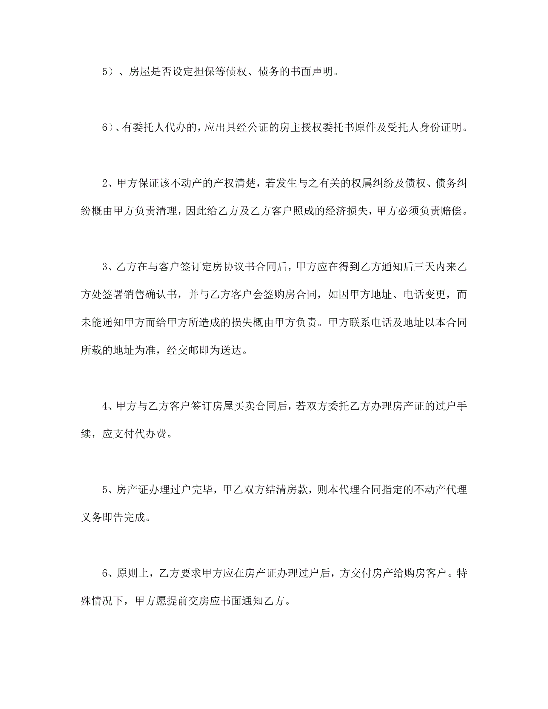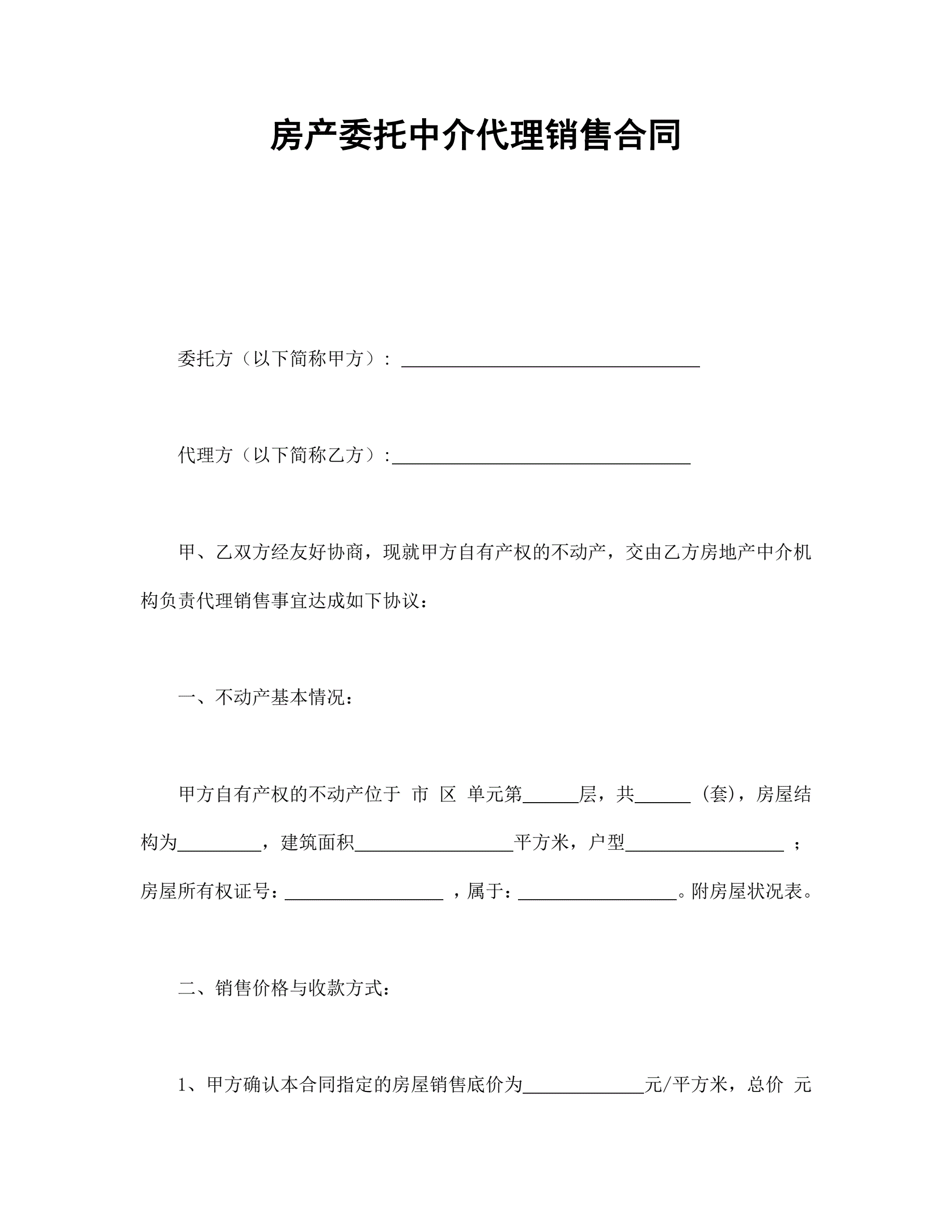 >房产委托中介代理销售合同