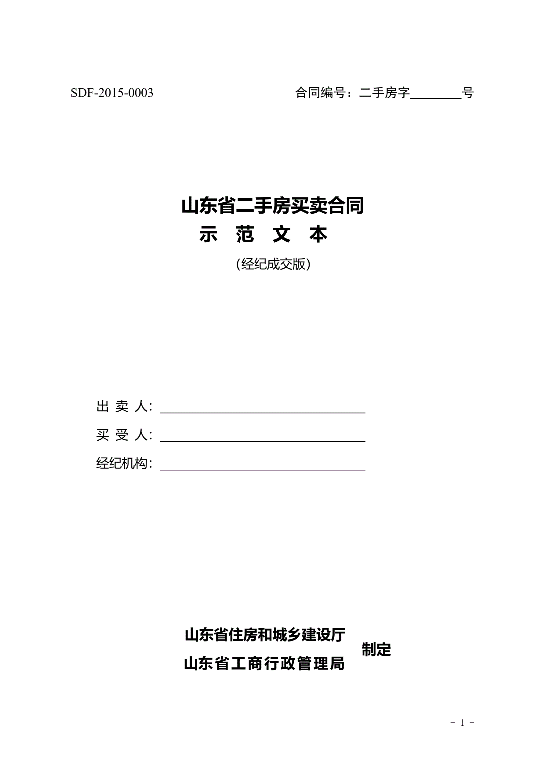 2015SDF-2015-0003《山东省二手房买卖合同示范文本(经纪成交版)》