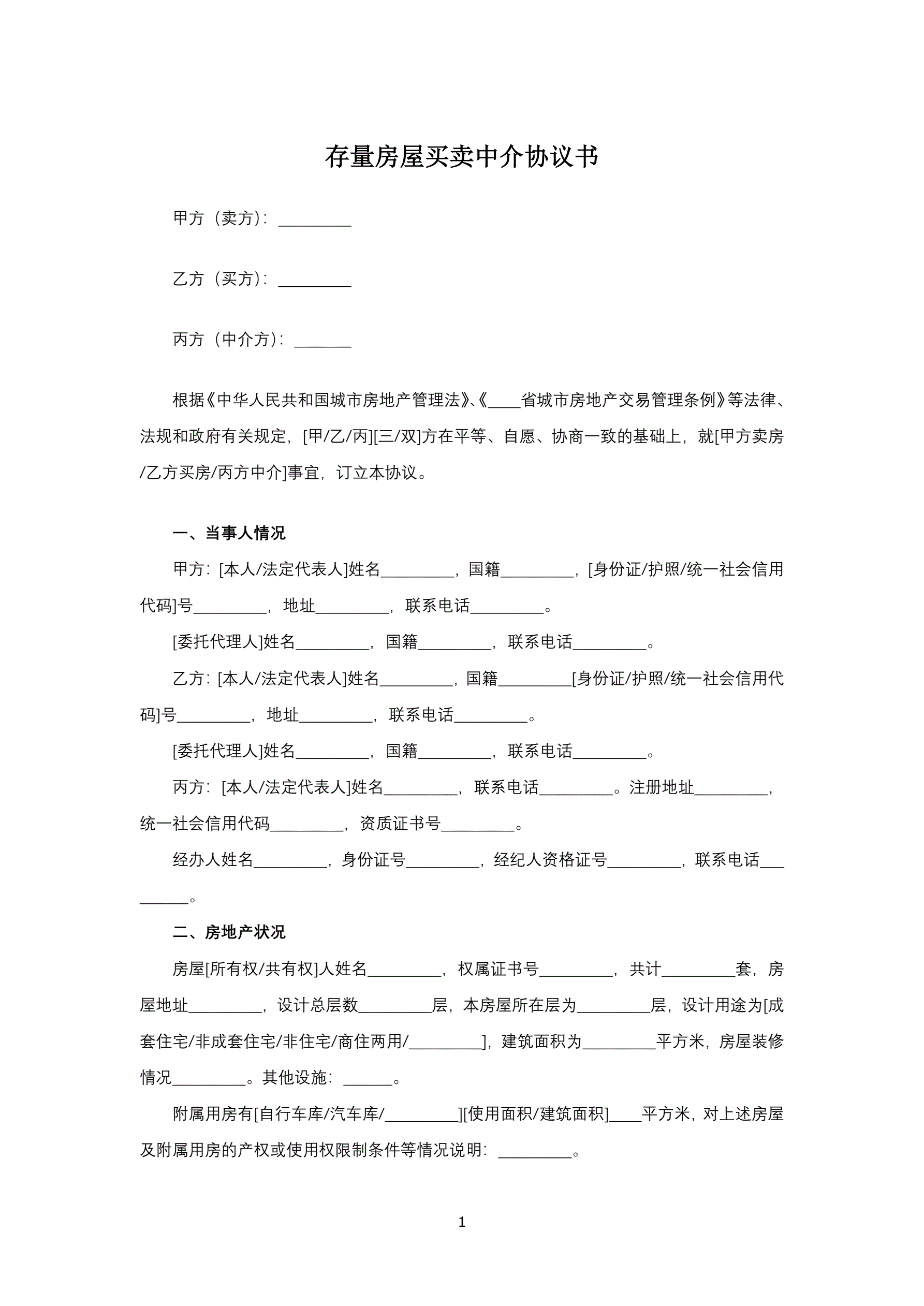 合同名称:存量房屋买卖中介协议书