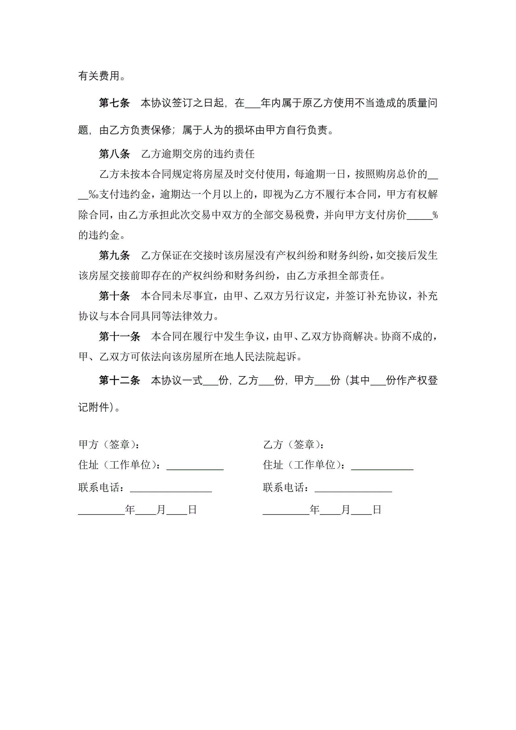 私有房屋买卖协议