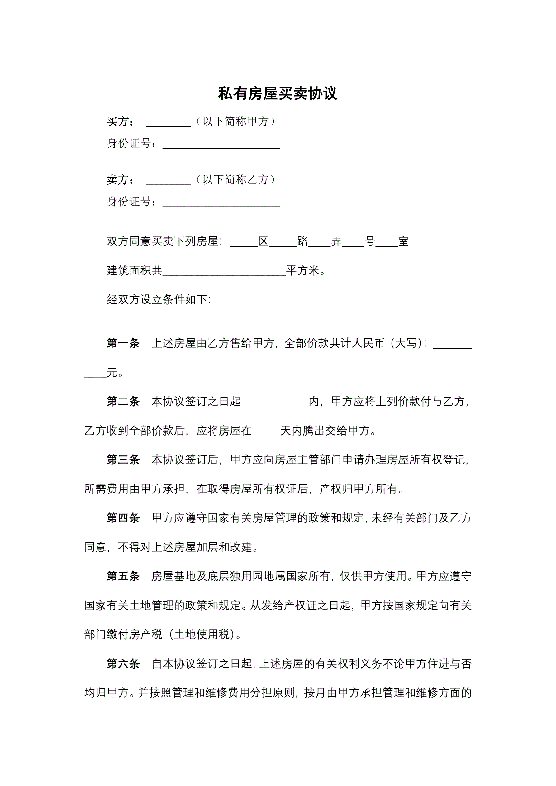 私有房屋买卖协议