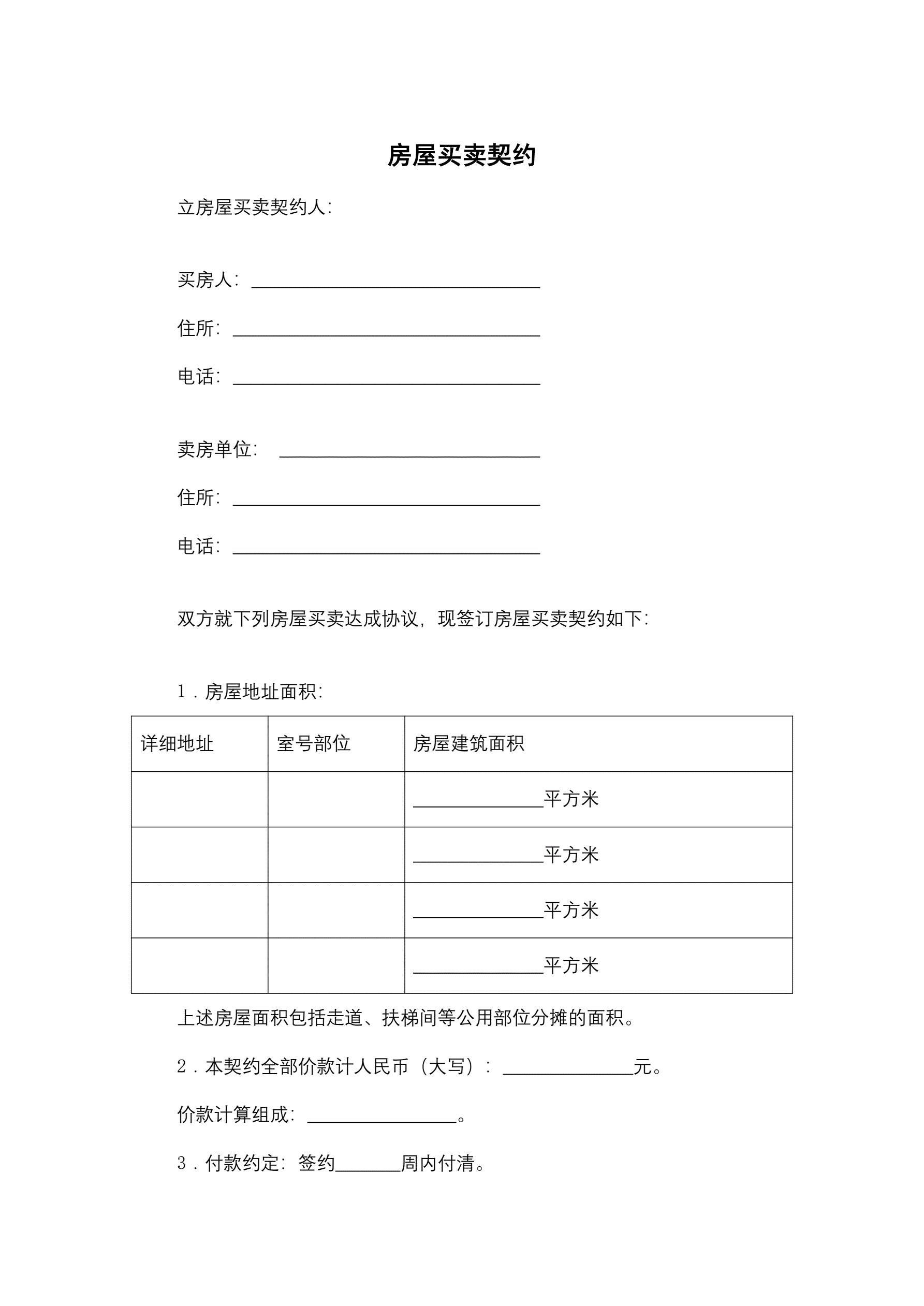 房屋买卖契约