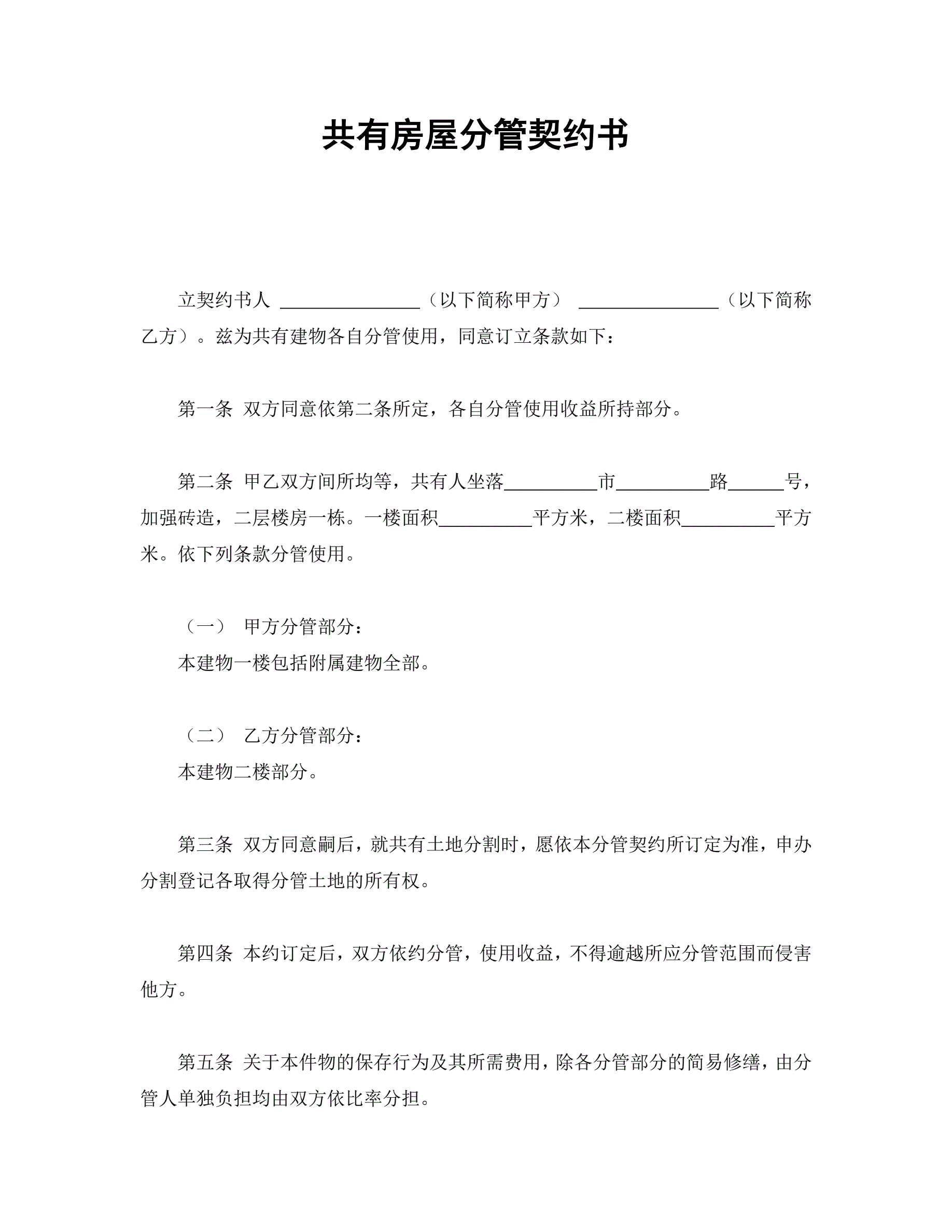 合同名称:共有房屋分管契约书