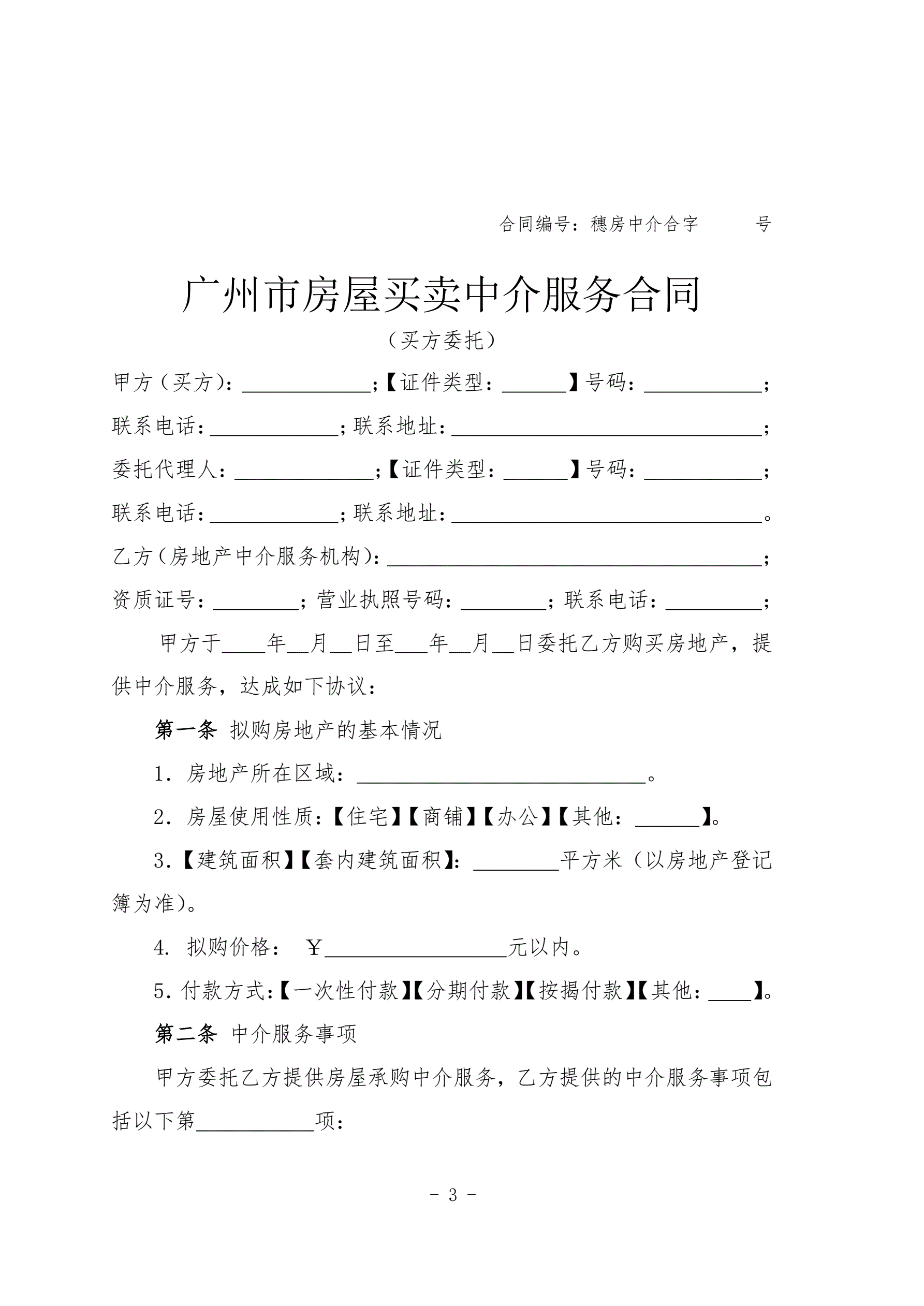 合同名称:广州市房屋买卖中介服务合同
