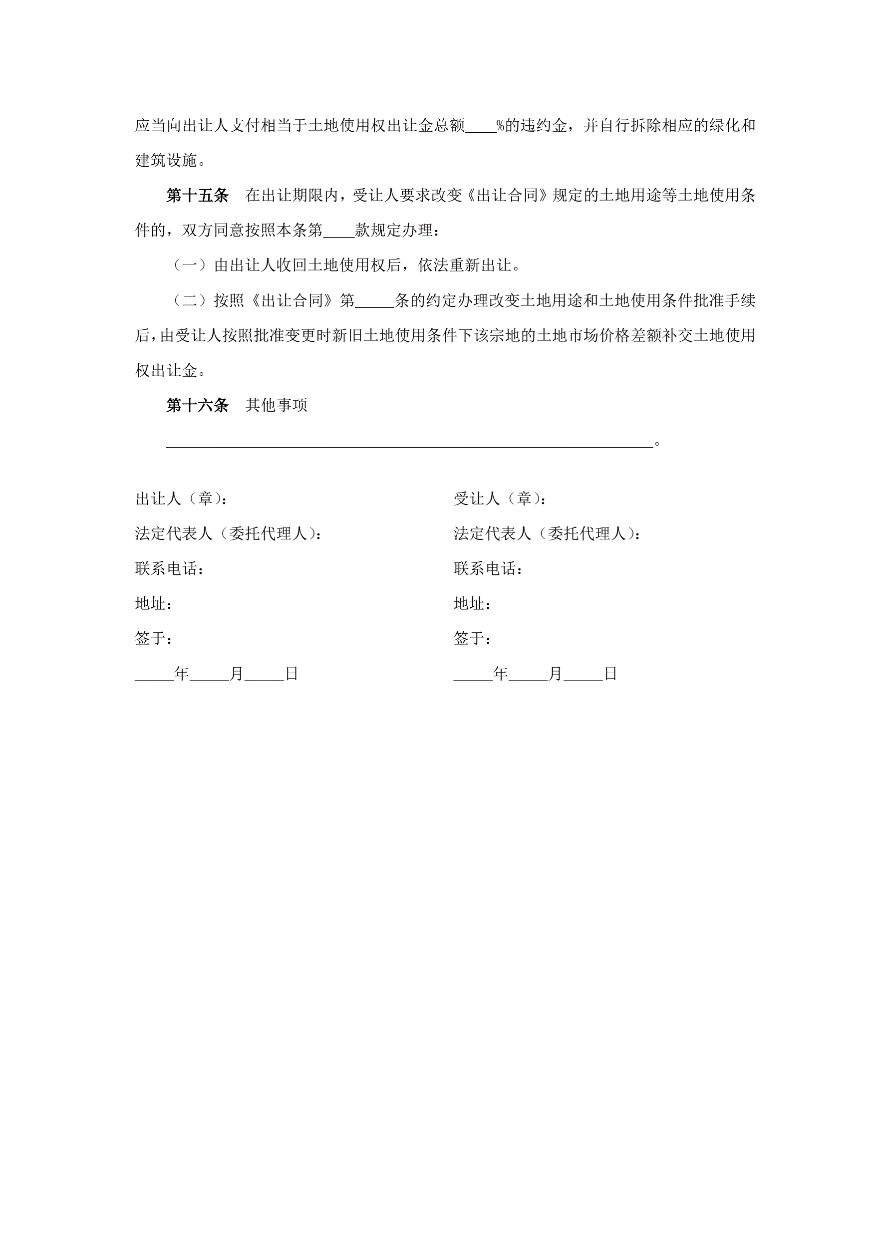 >国有土地使用权出让合同补充协议