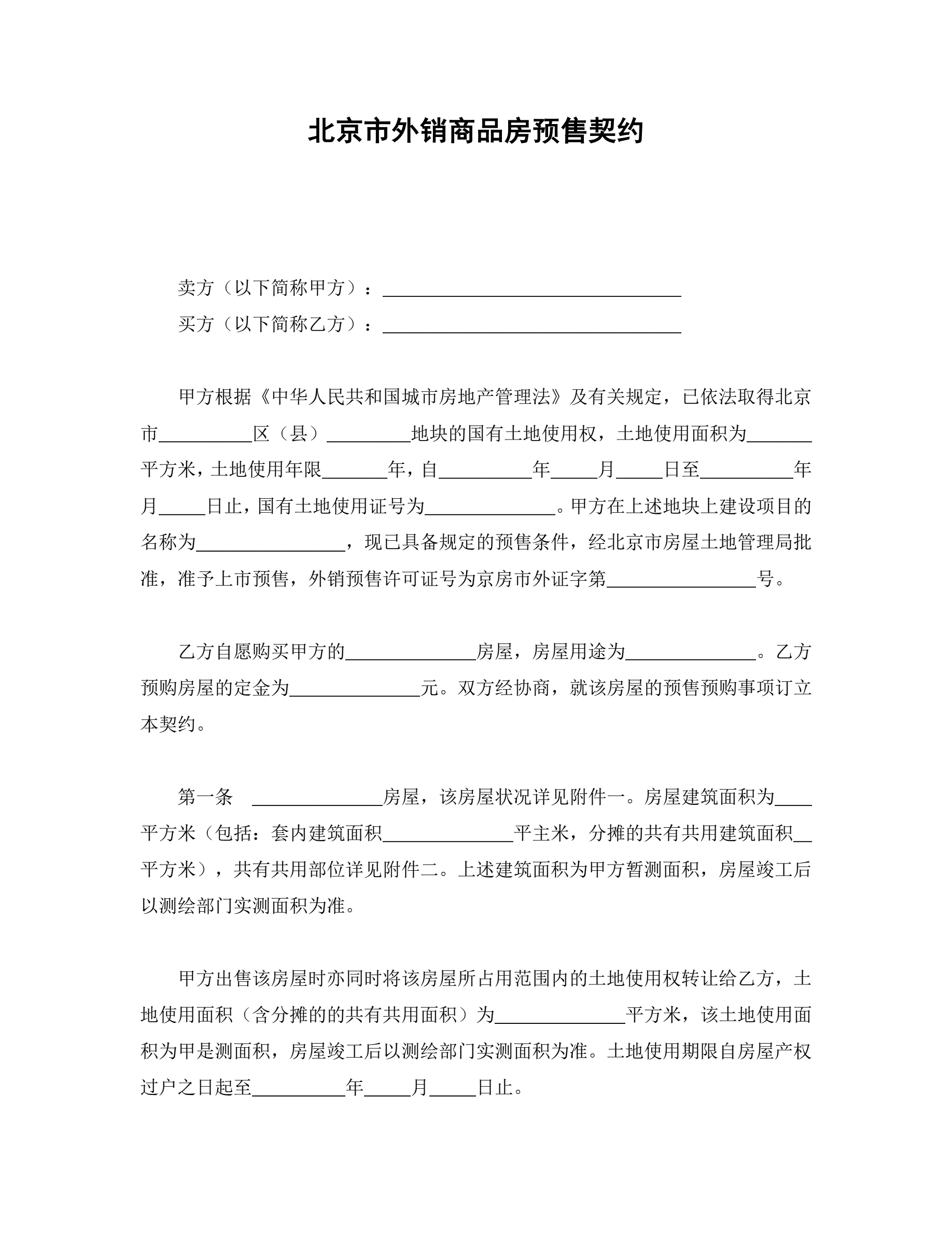 >北京市外销商品房预售契约