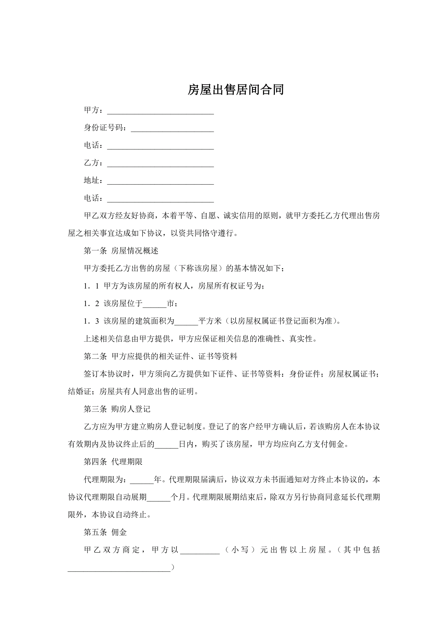 房屋出售居间合同
