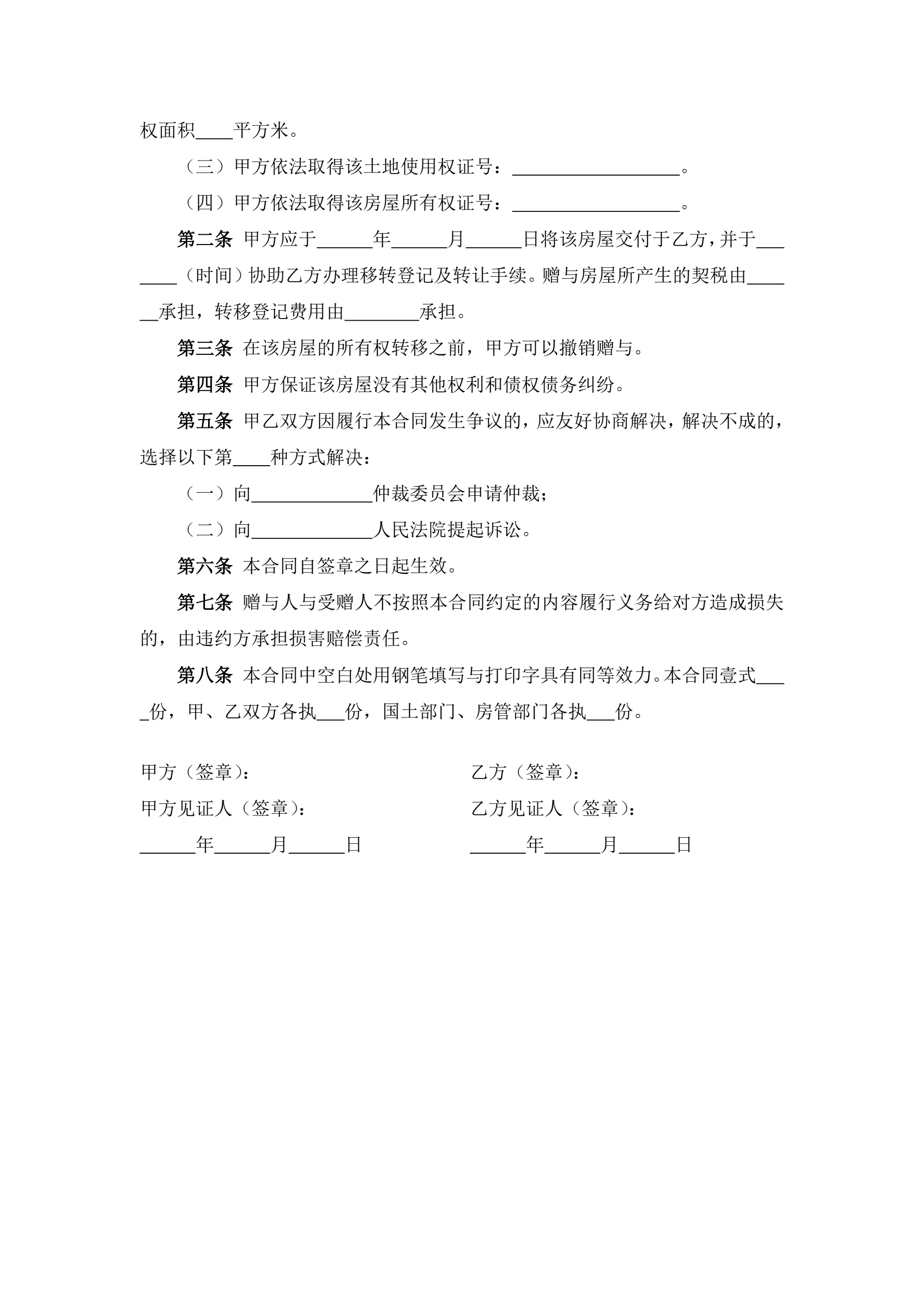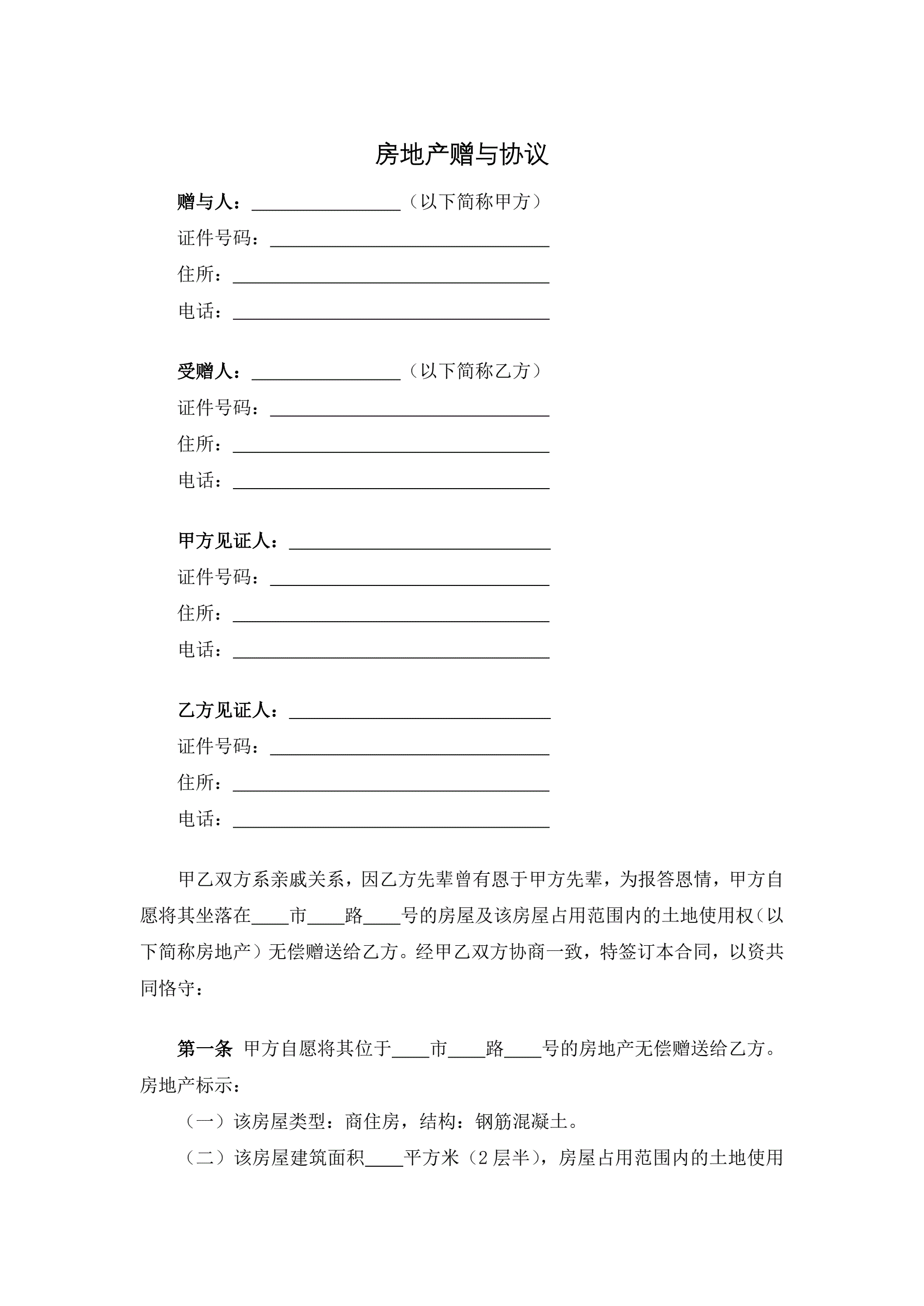 房地产赠与协议
