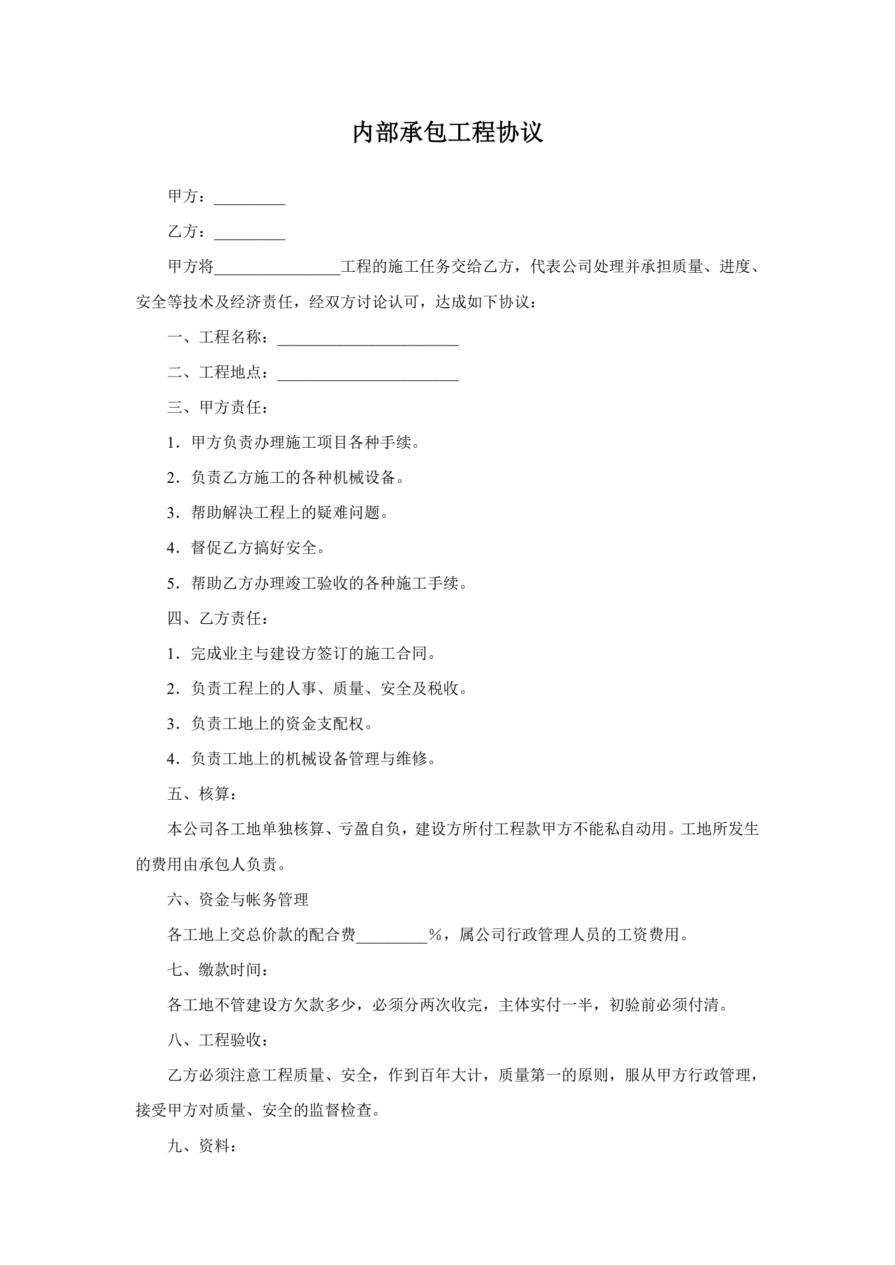 >内部承包工程协议