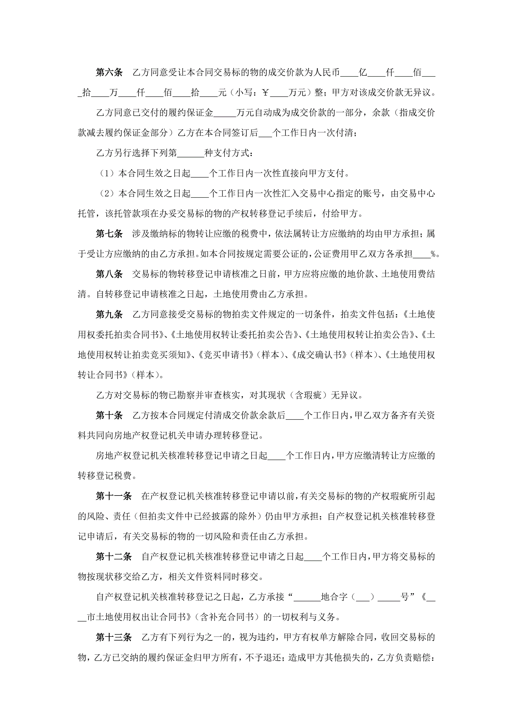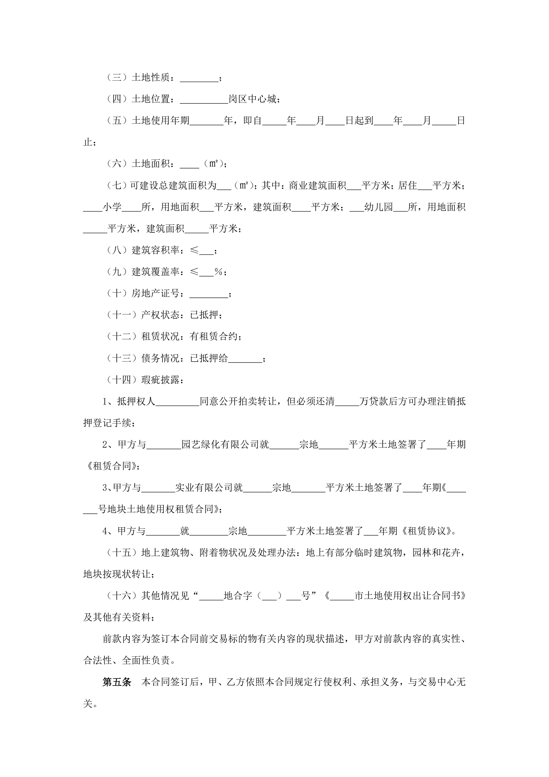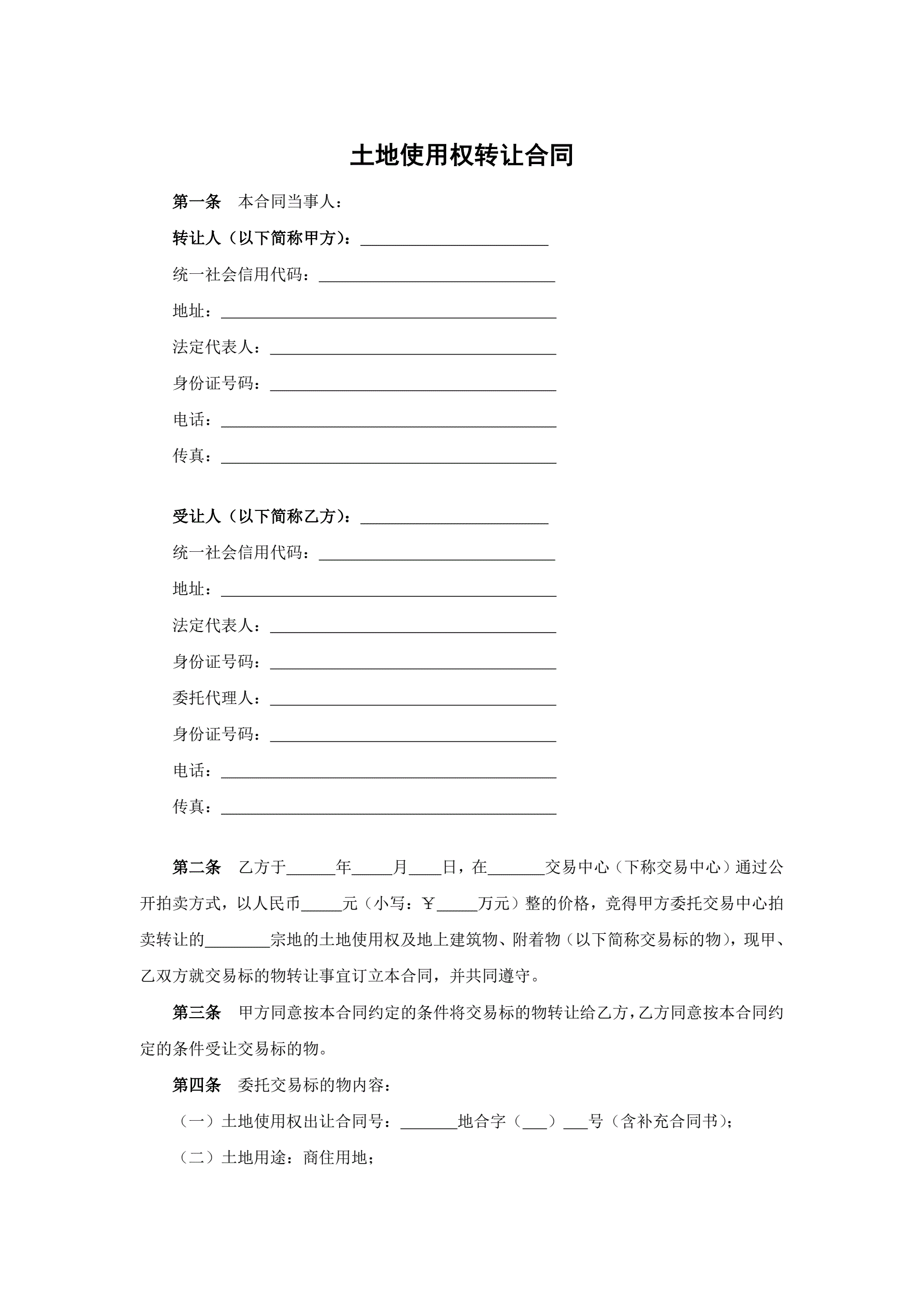 >土地使用权转让合同