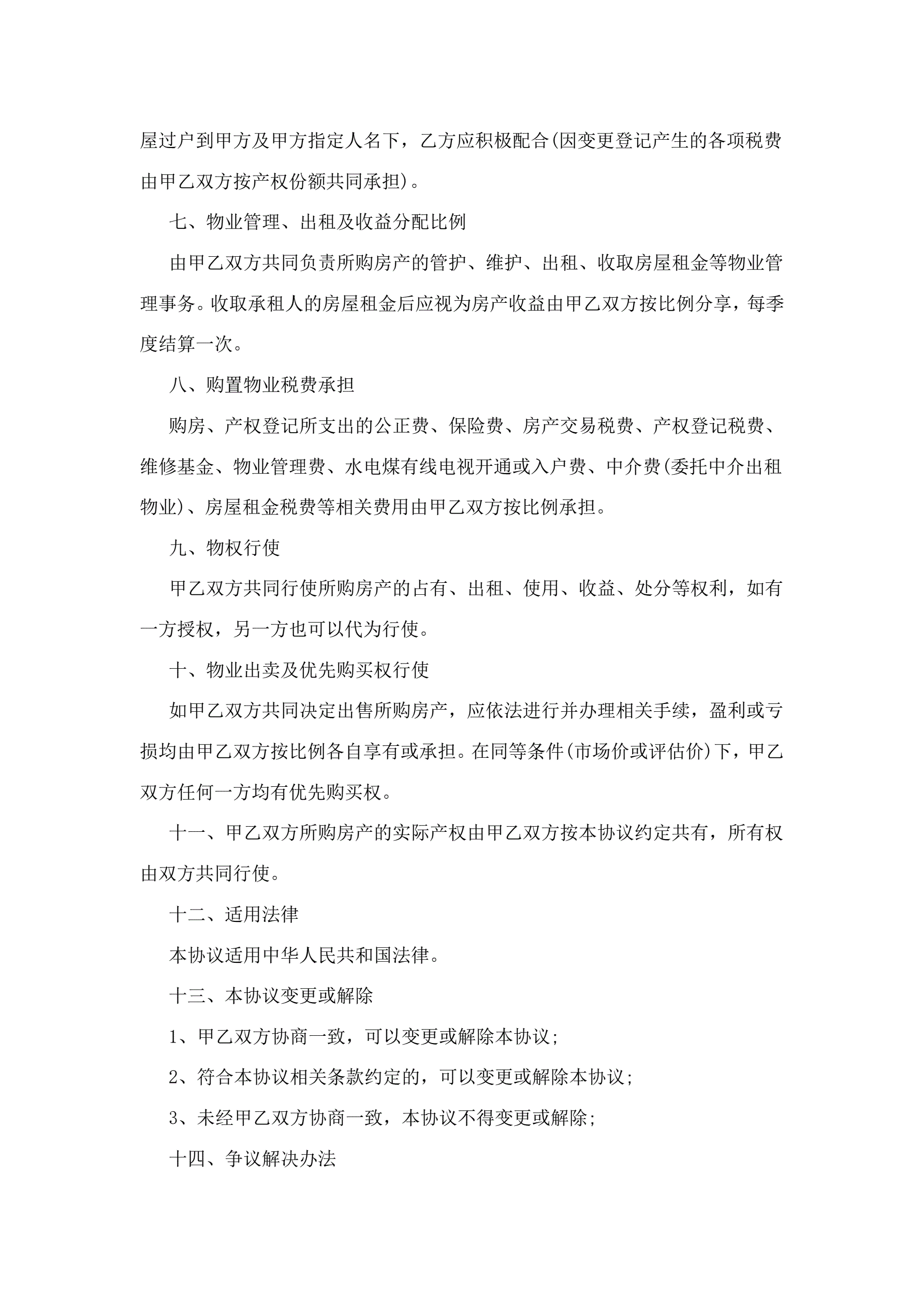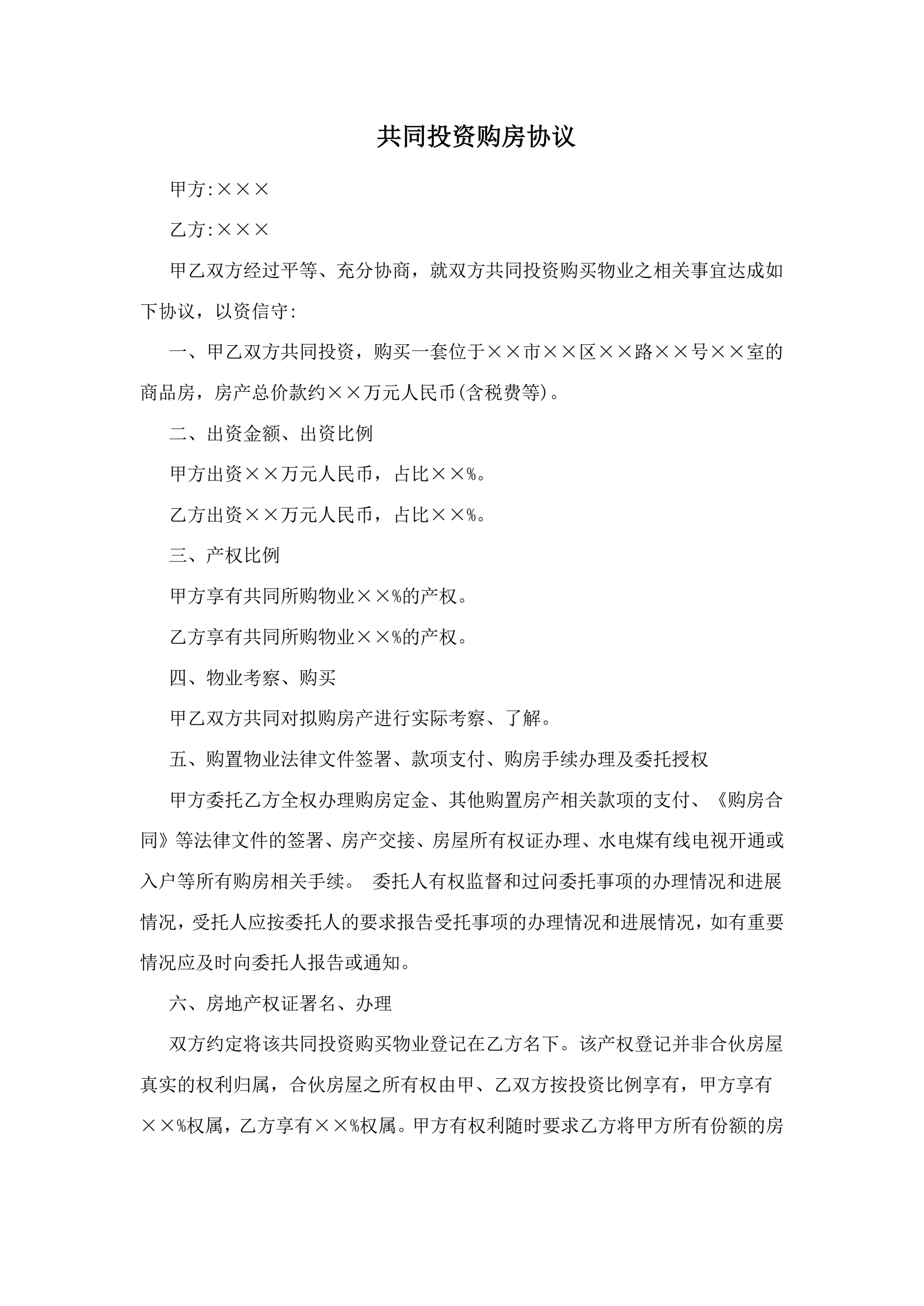 >共同投资购房协议