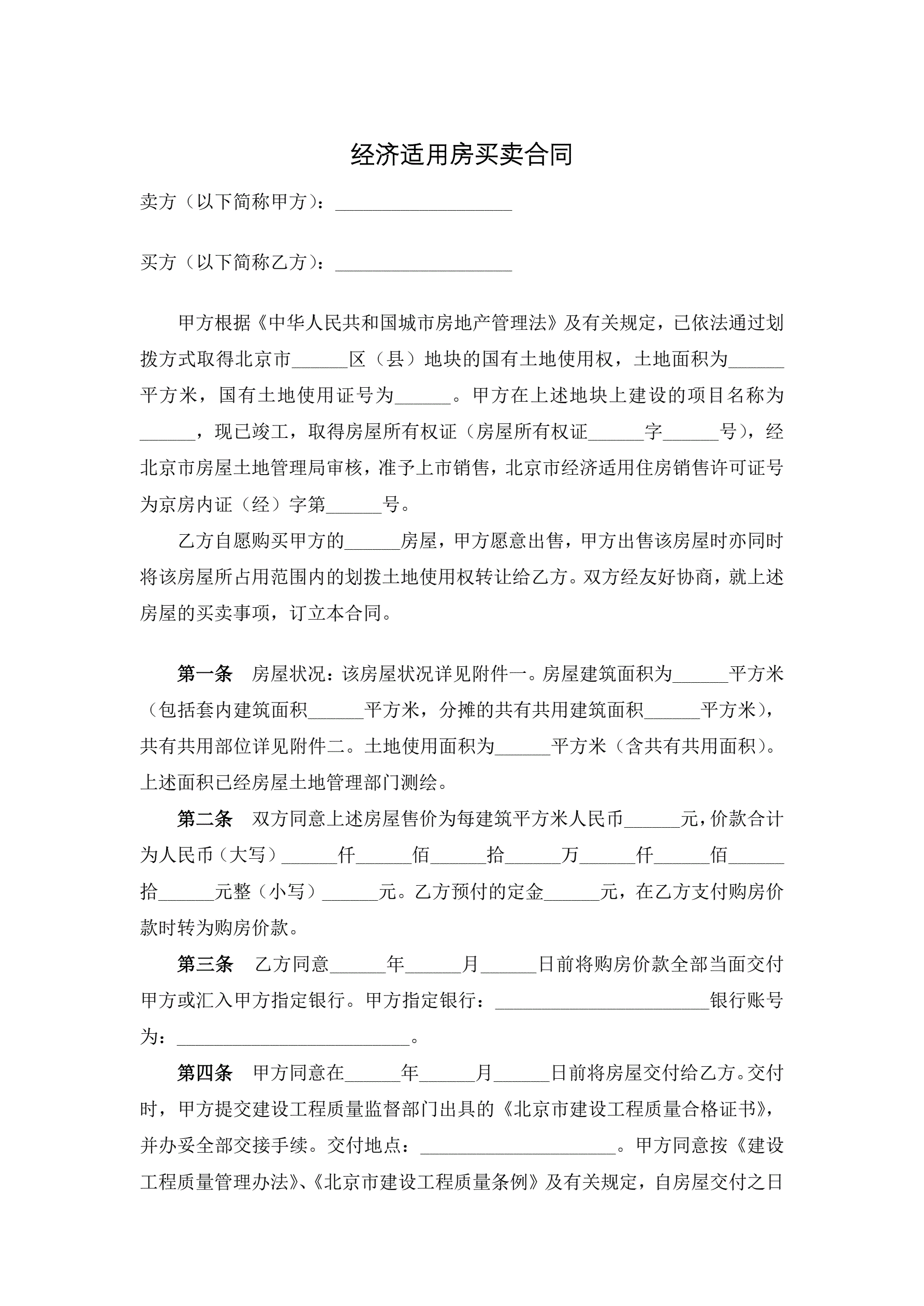>经济适用房买卖合同