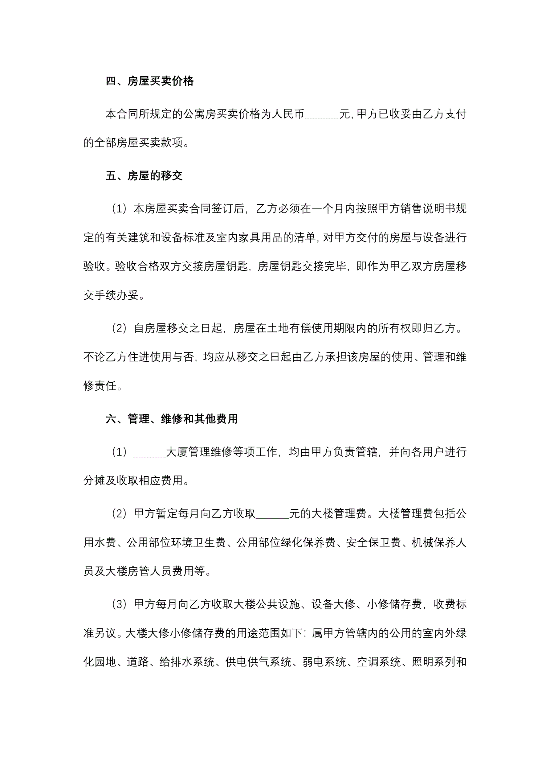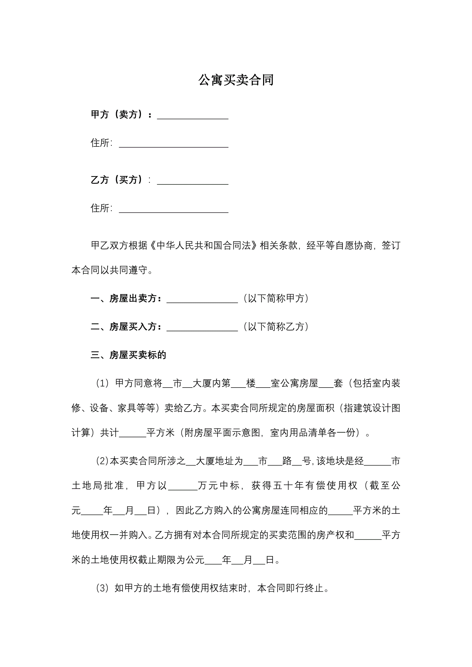公寓买卖合同